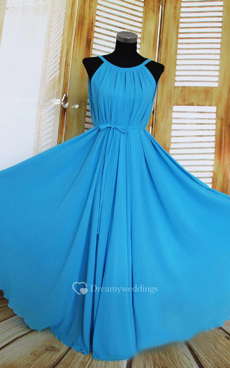 Sleeveless Floor-length Chiffon Dress With Pleats