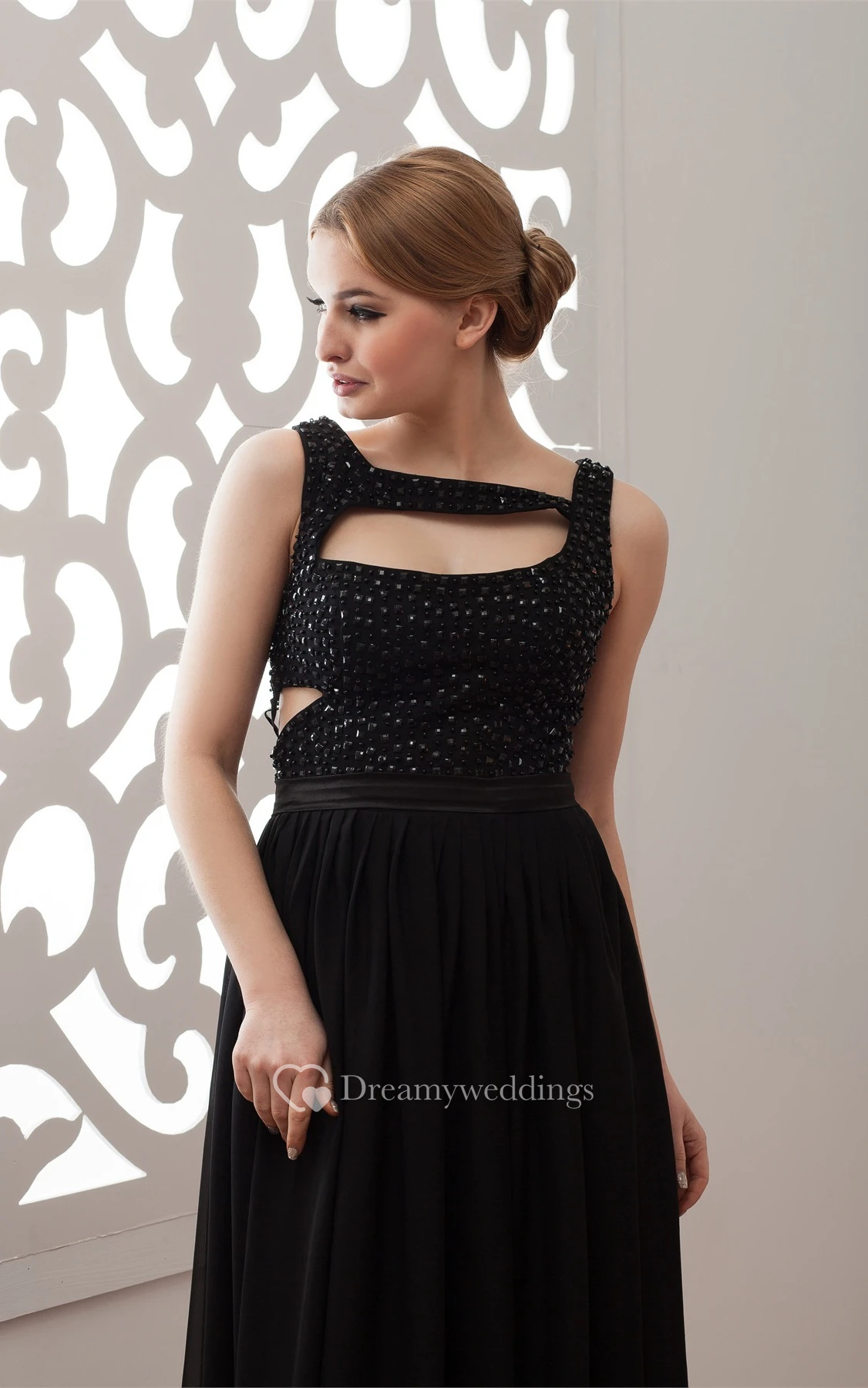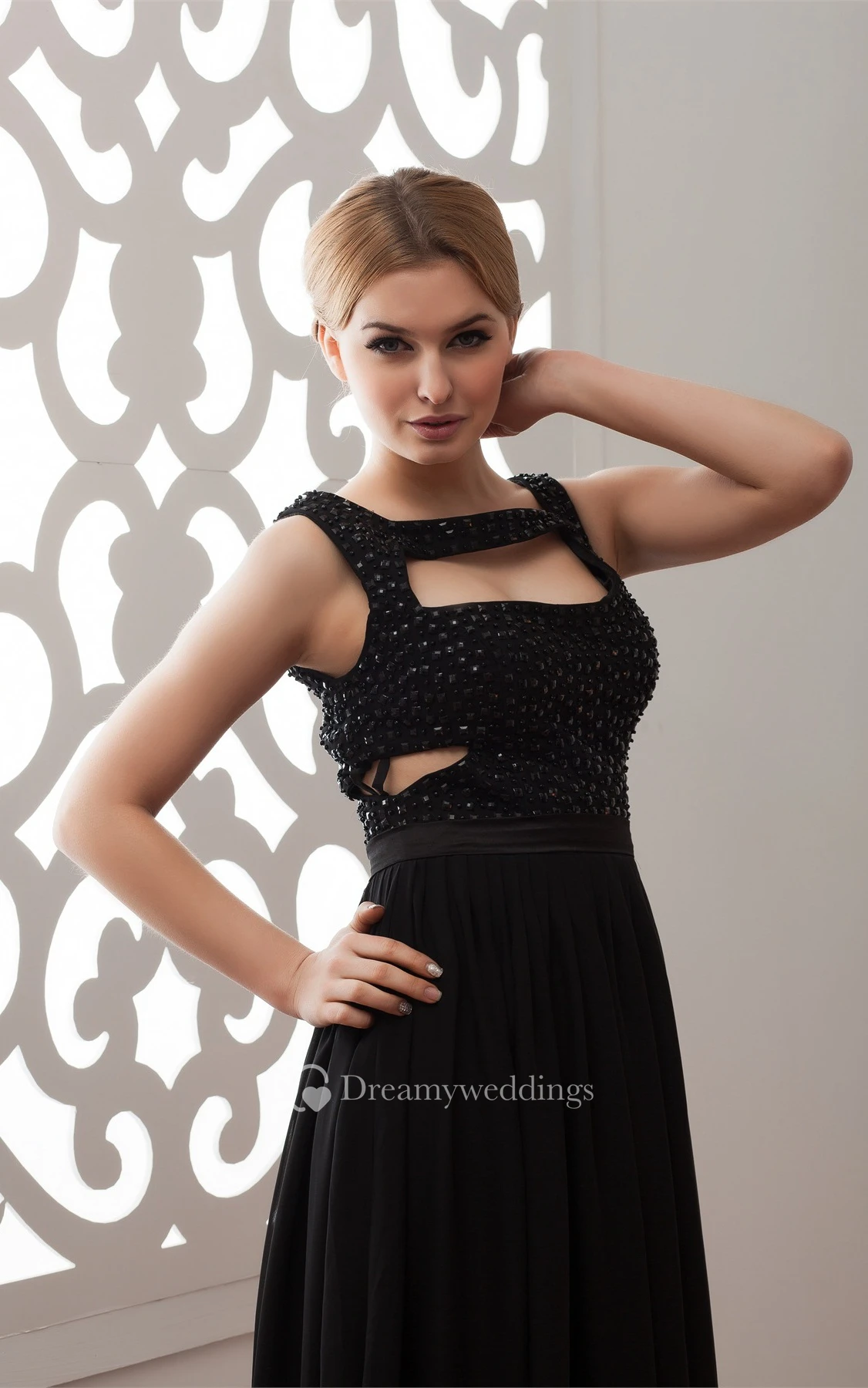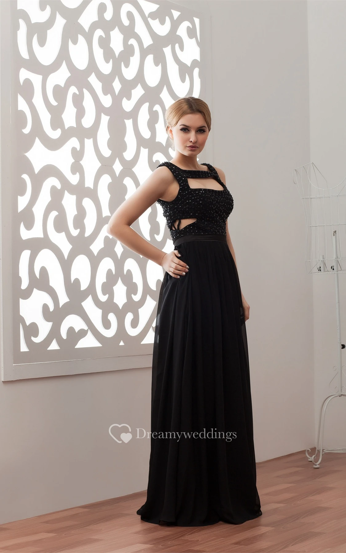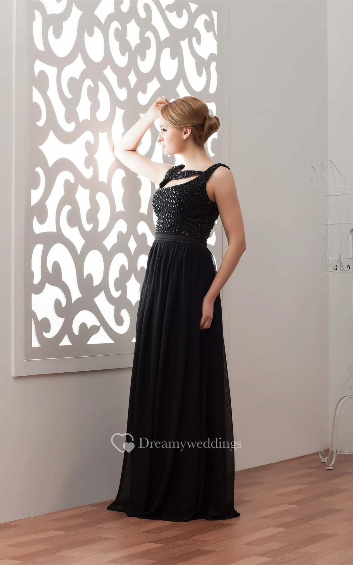Sleeveless Floor-Length Chiffon Keyhole and Dress With Stress
