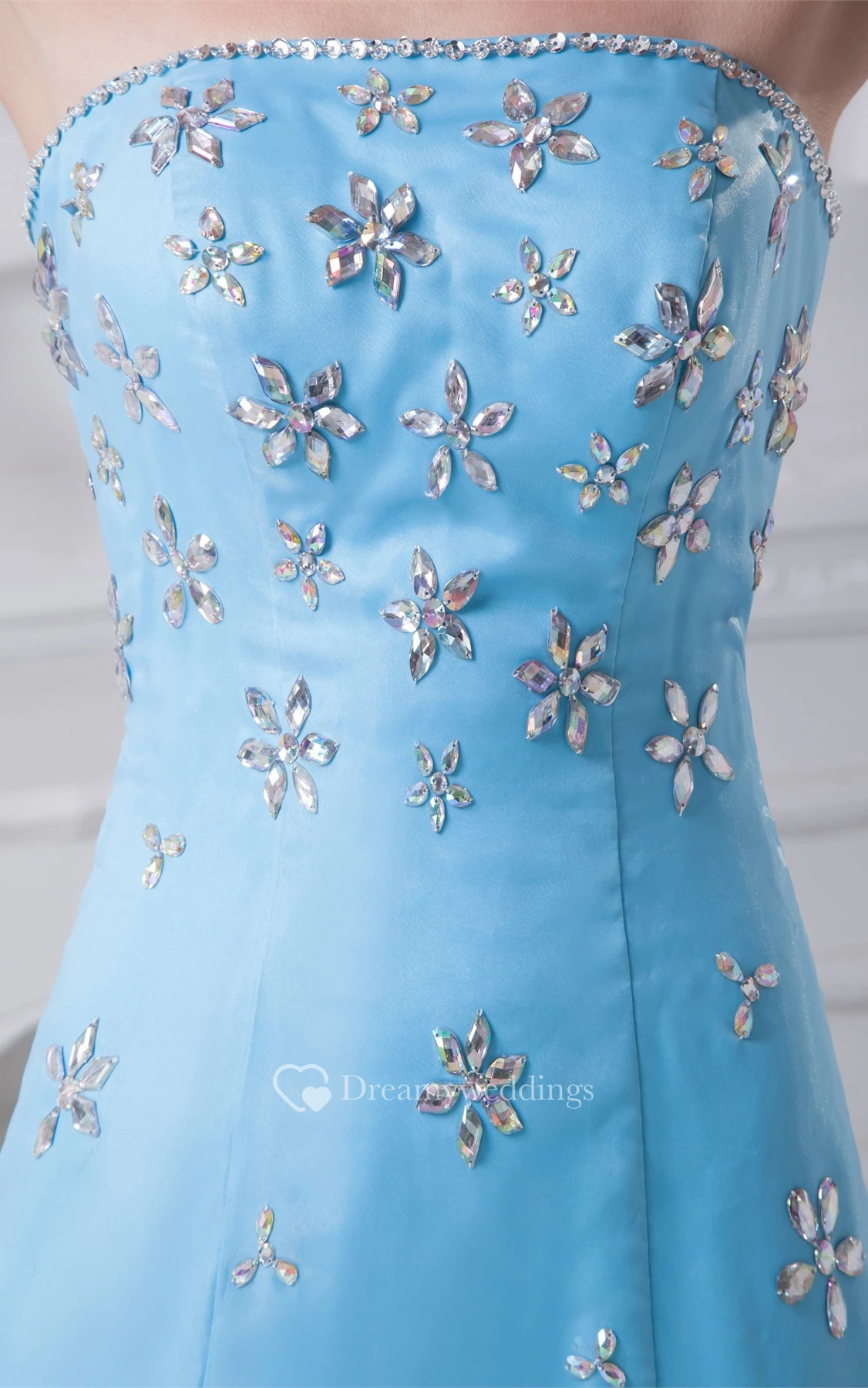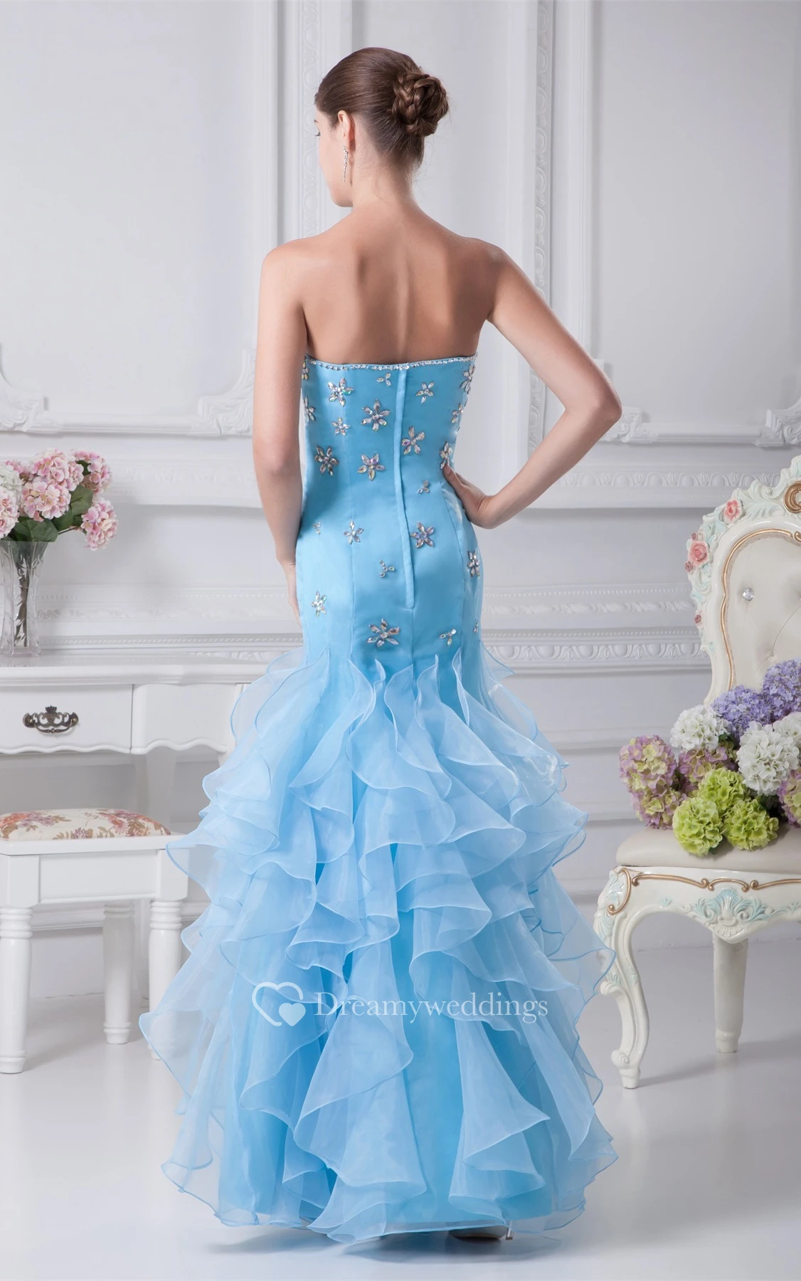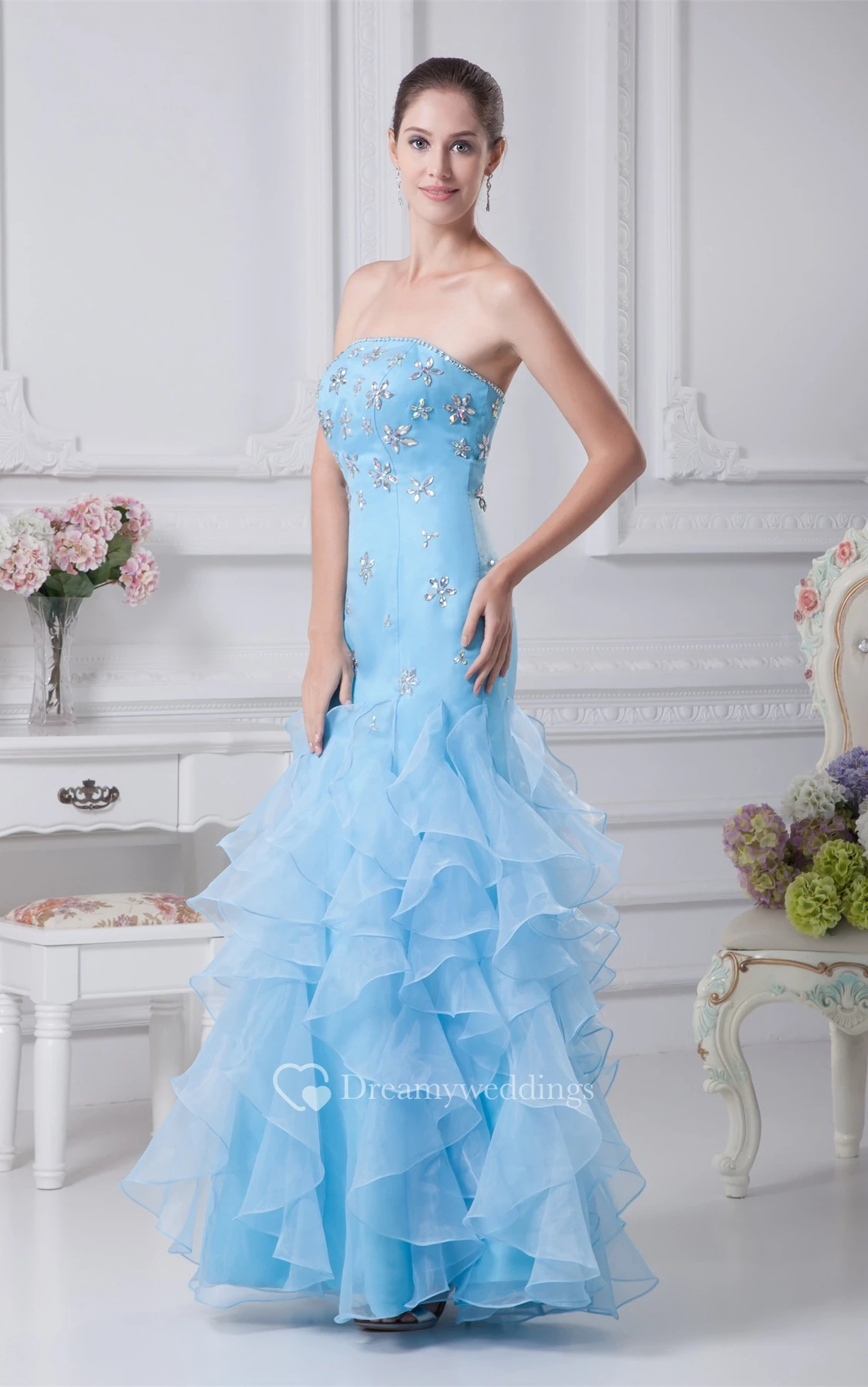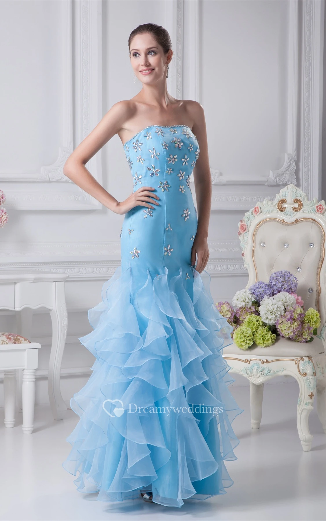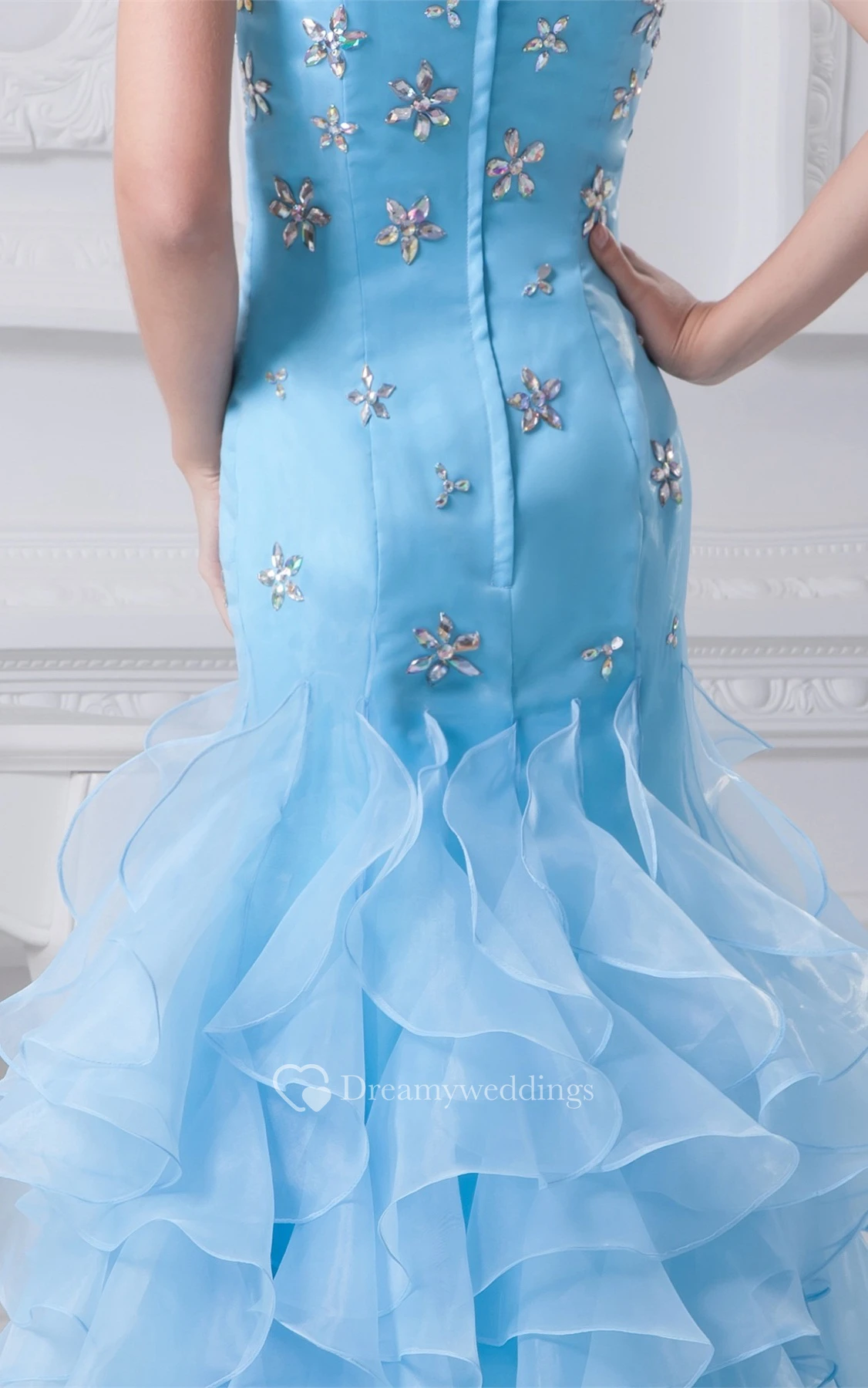 Sleeveless Floor-Length Column Cascading Ruffles and Dress With Rhinestone