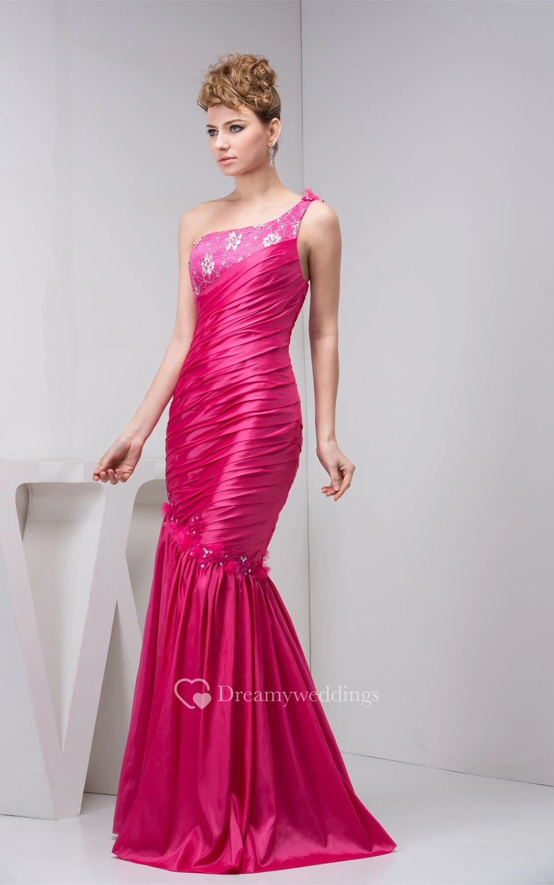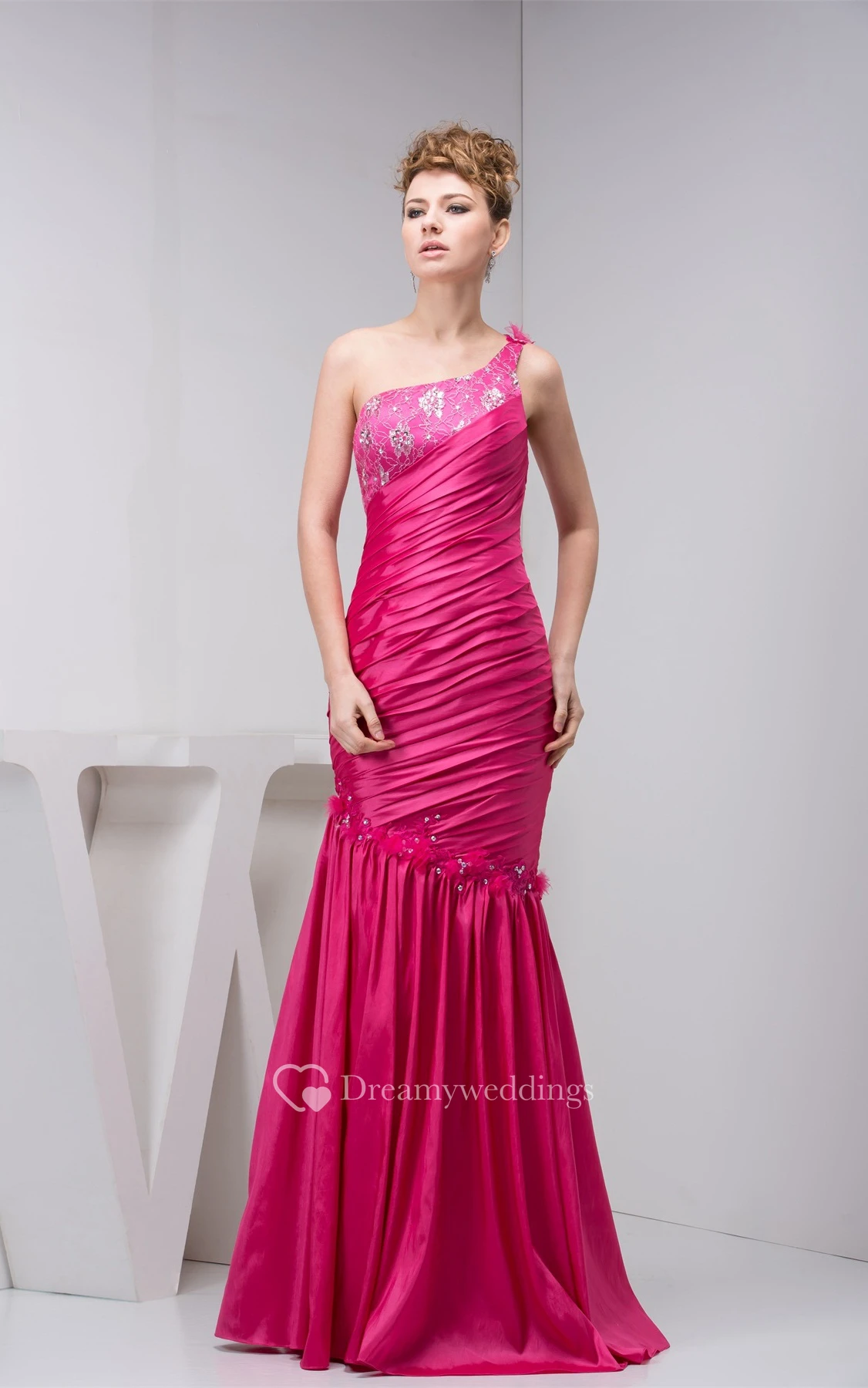 Sleeveless Floor-Length Column Ruched Bodice and Dress With Lace