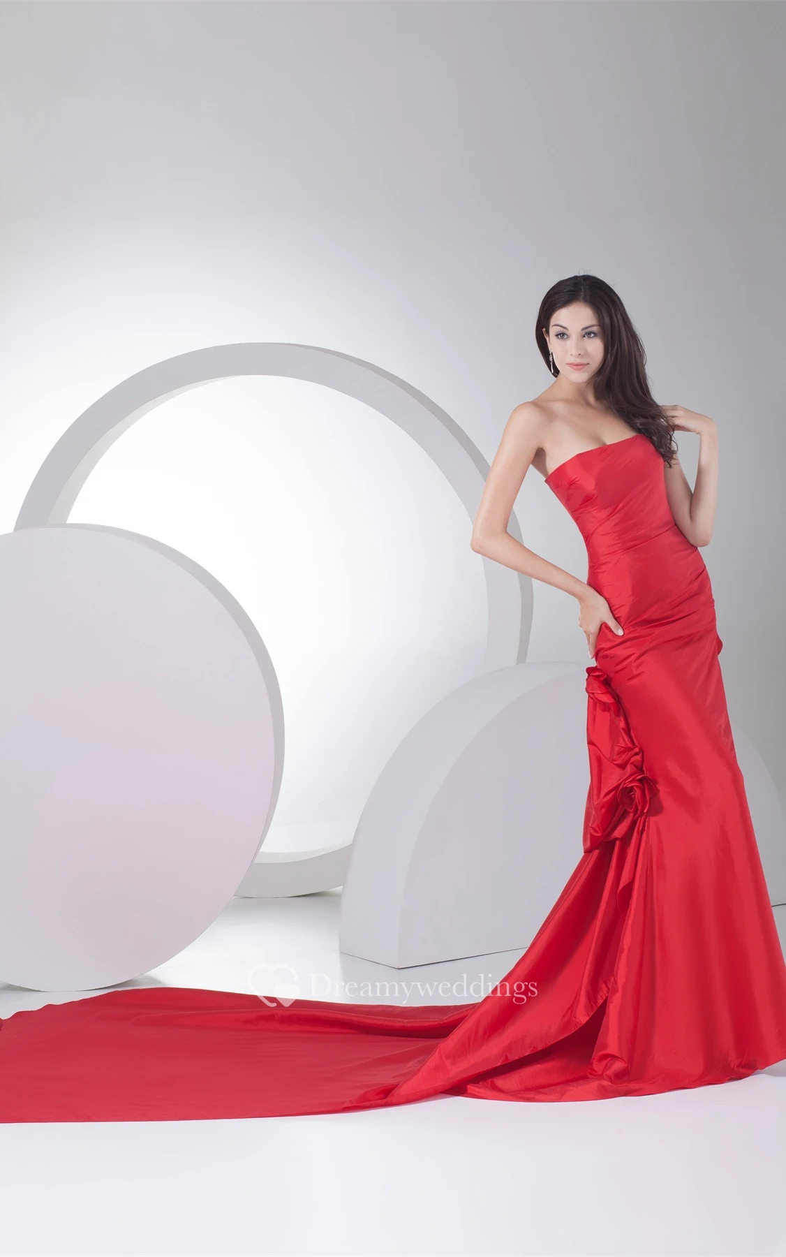 Sleeveless Floor-Length Sheath Royal Train and Dress With Flower