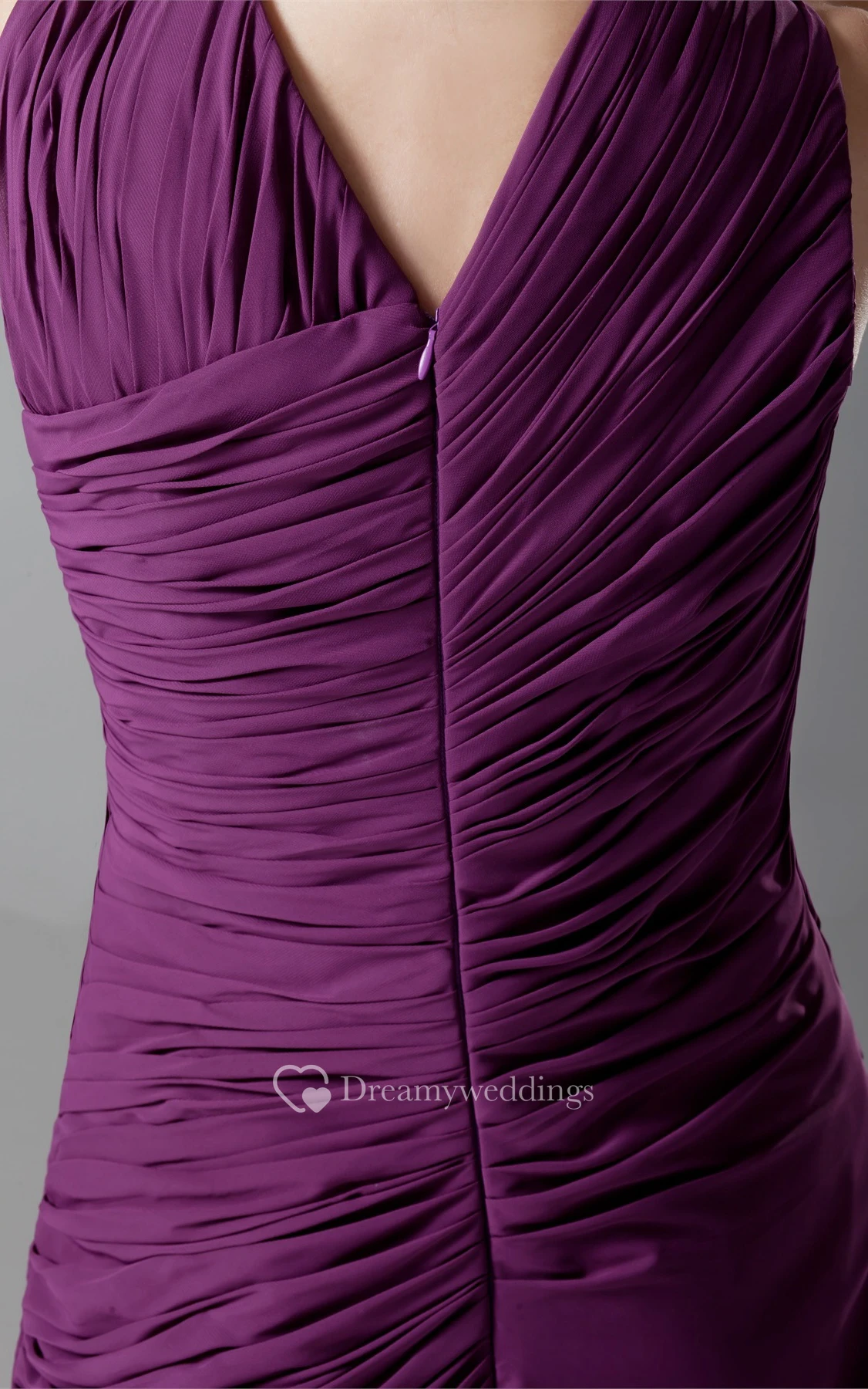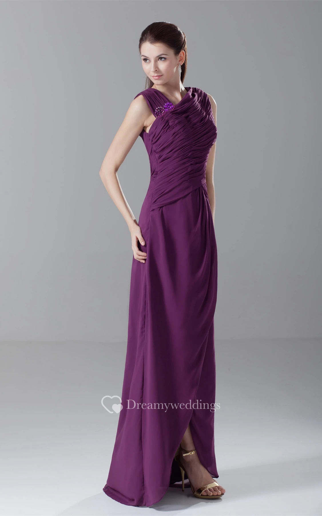 Sleeveless Front-Split Chiffon Beading and Dress With Ruching