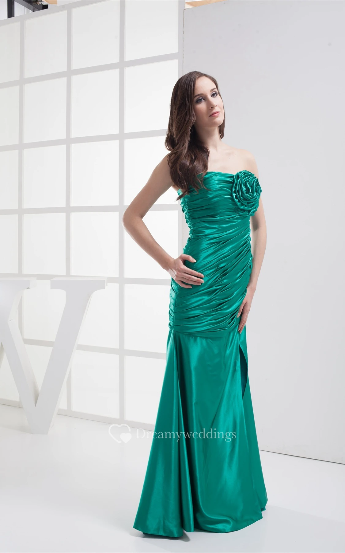 Sleeveless Front-Split Mermaid Flower and Dress With Ruching