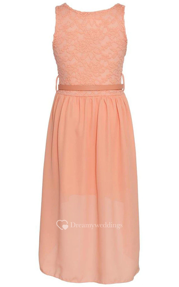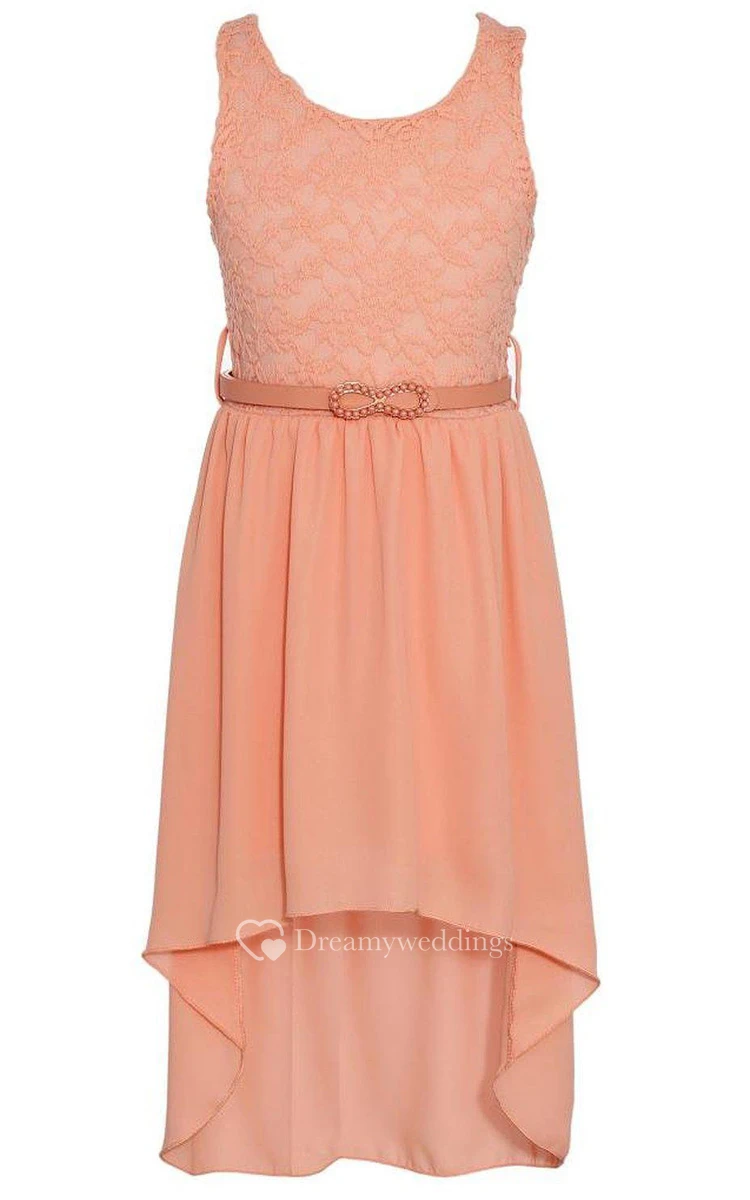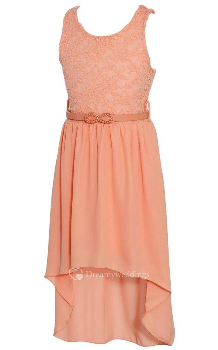 Sleeveless High-low Dress With Lace Bodice and Belt