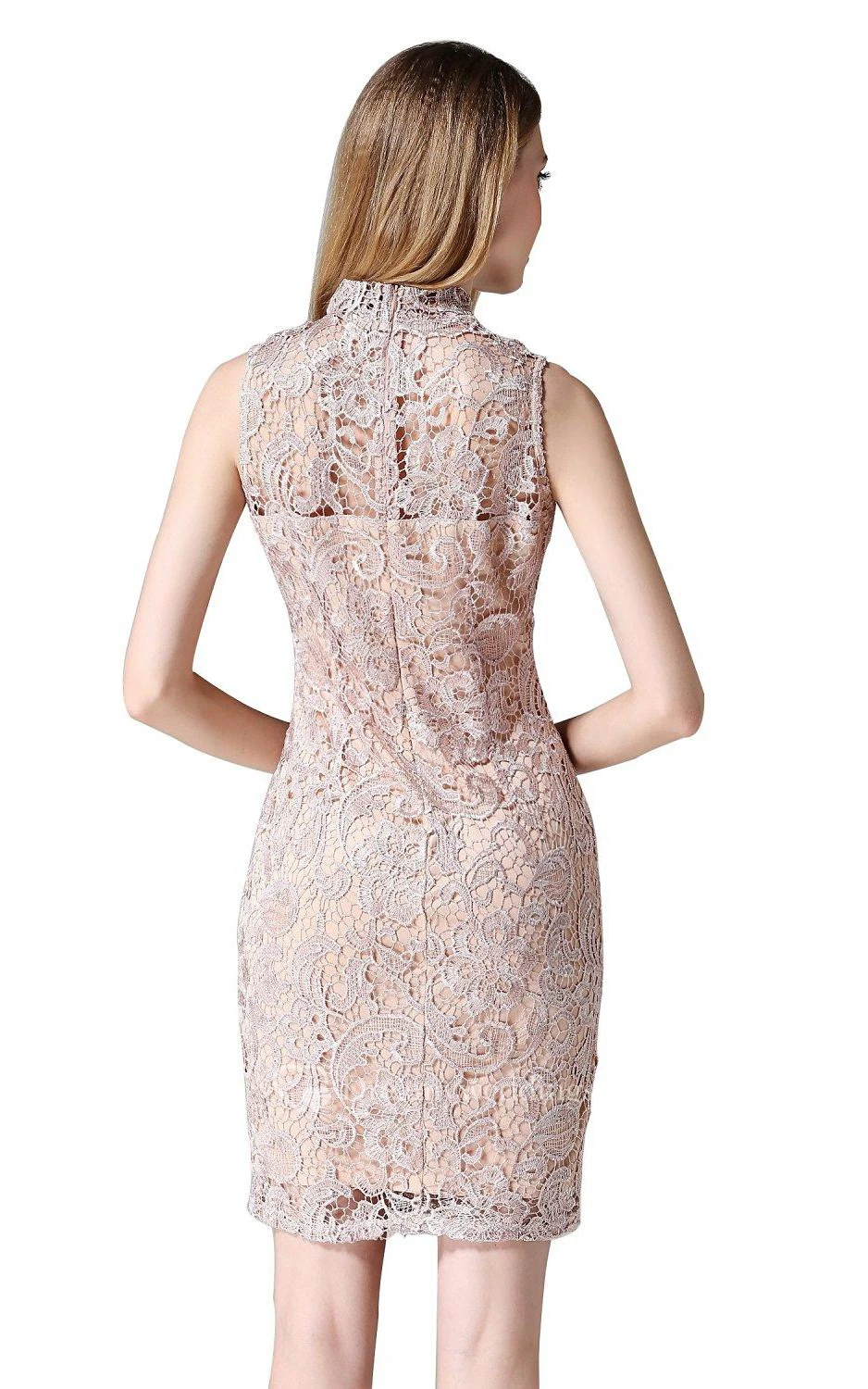 Sleeveless High-neck Allover Lace Dress with Zipper