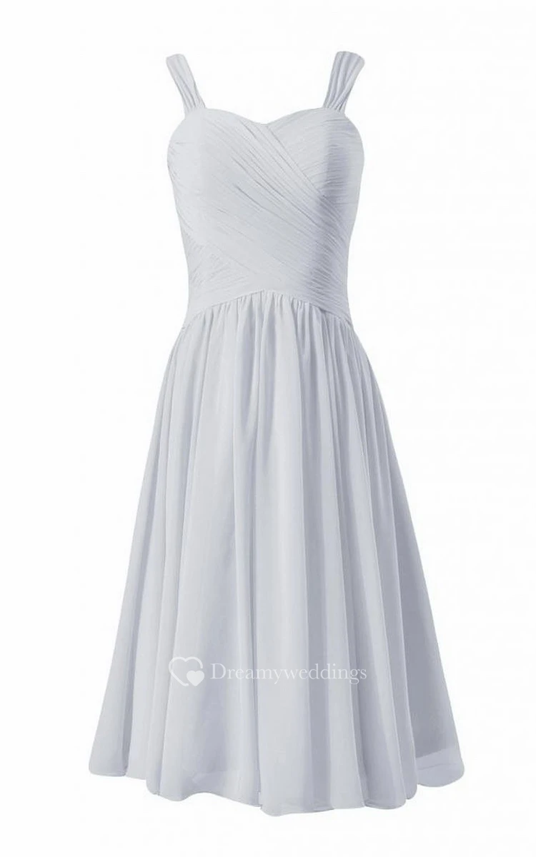 Sleeveless Knee-length Dress With Crisscross Ruching