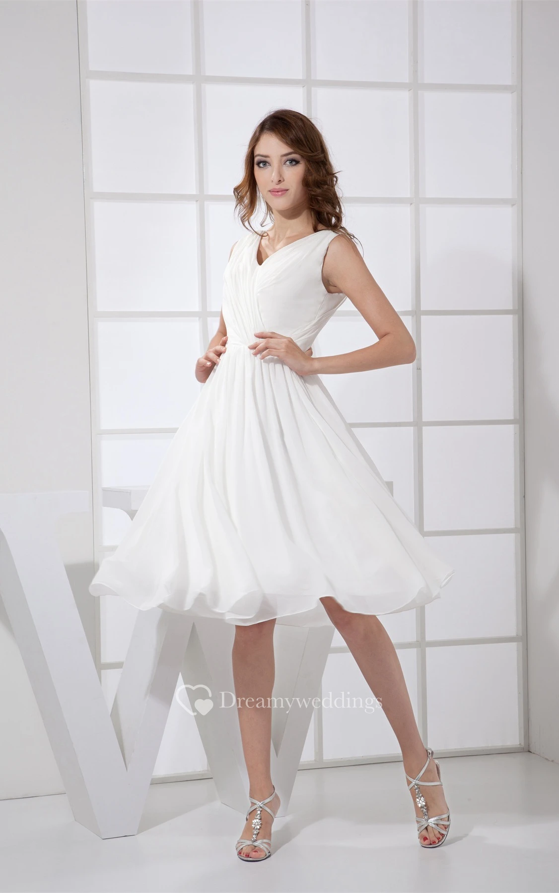 Sleeveless Knee-Length Low-V-Back Pleats and Dress With Ruching