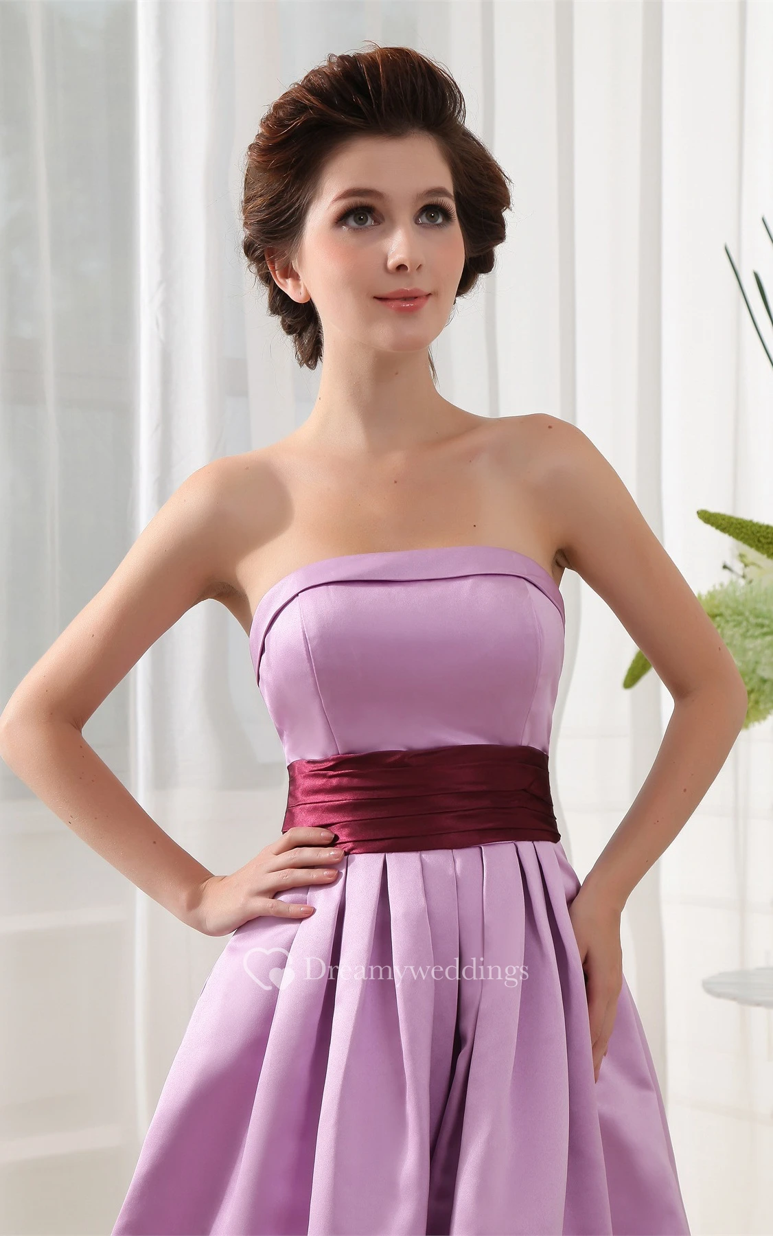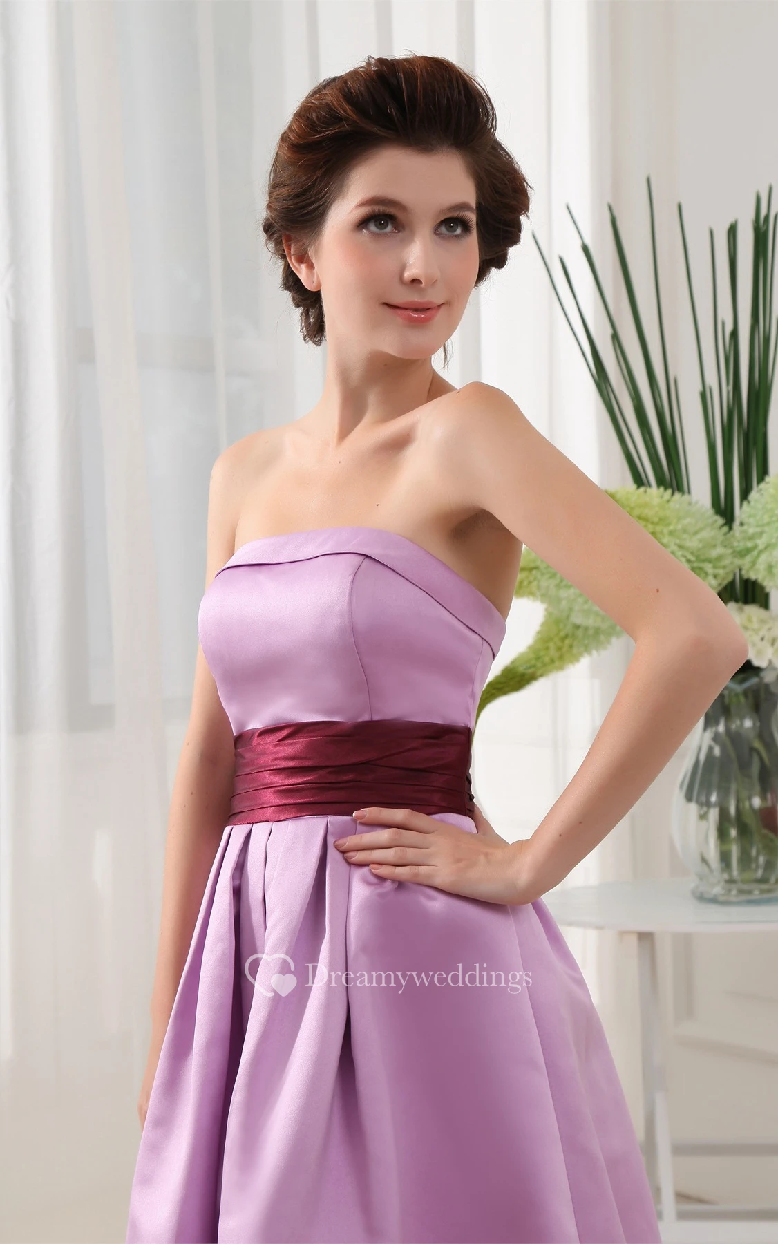 Sleeveless Knee-Length Satin Dress With Ruched Waist