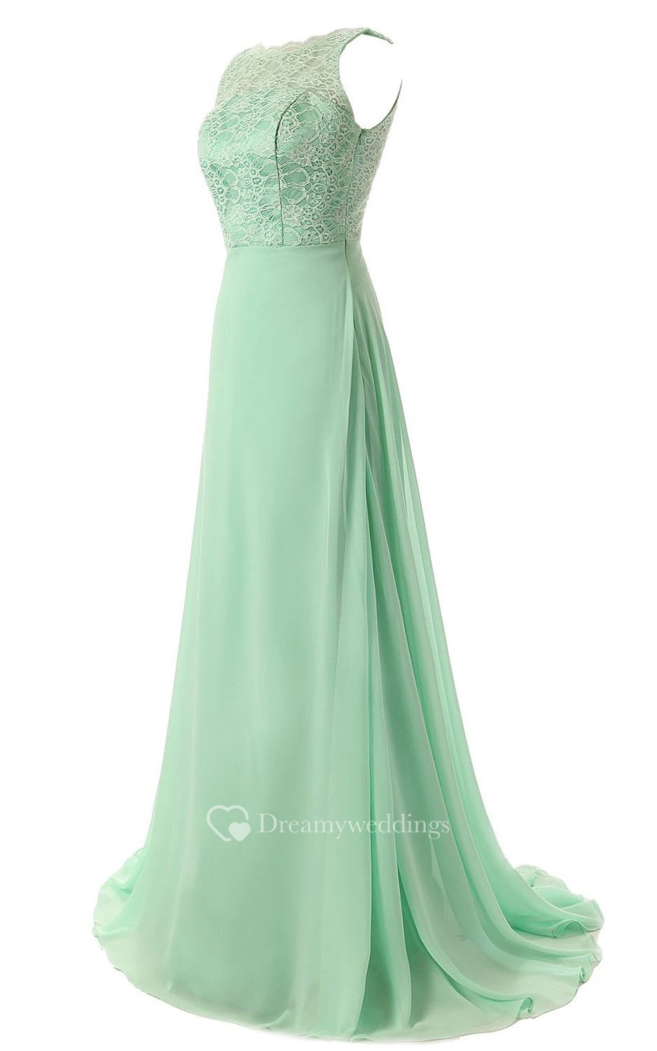 Sleeveless Lace Appliqued Bodice Long Layered Chiffon Dress