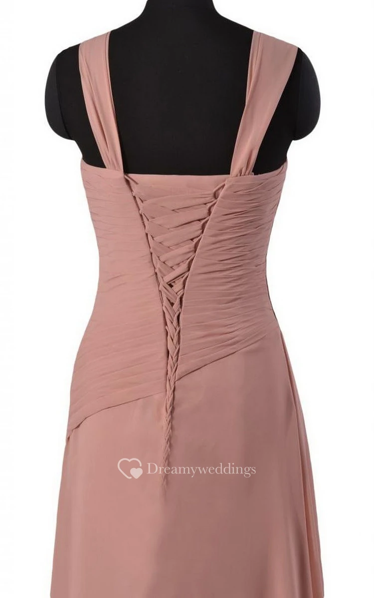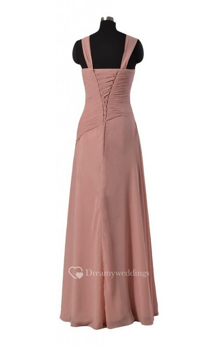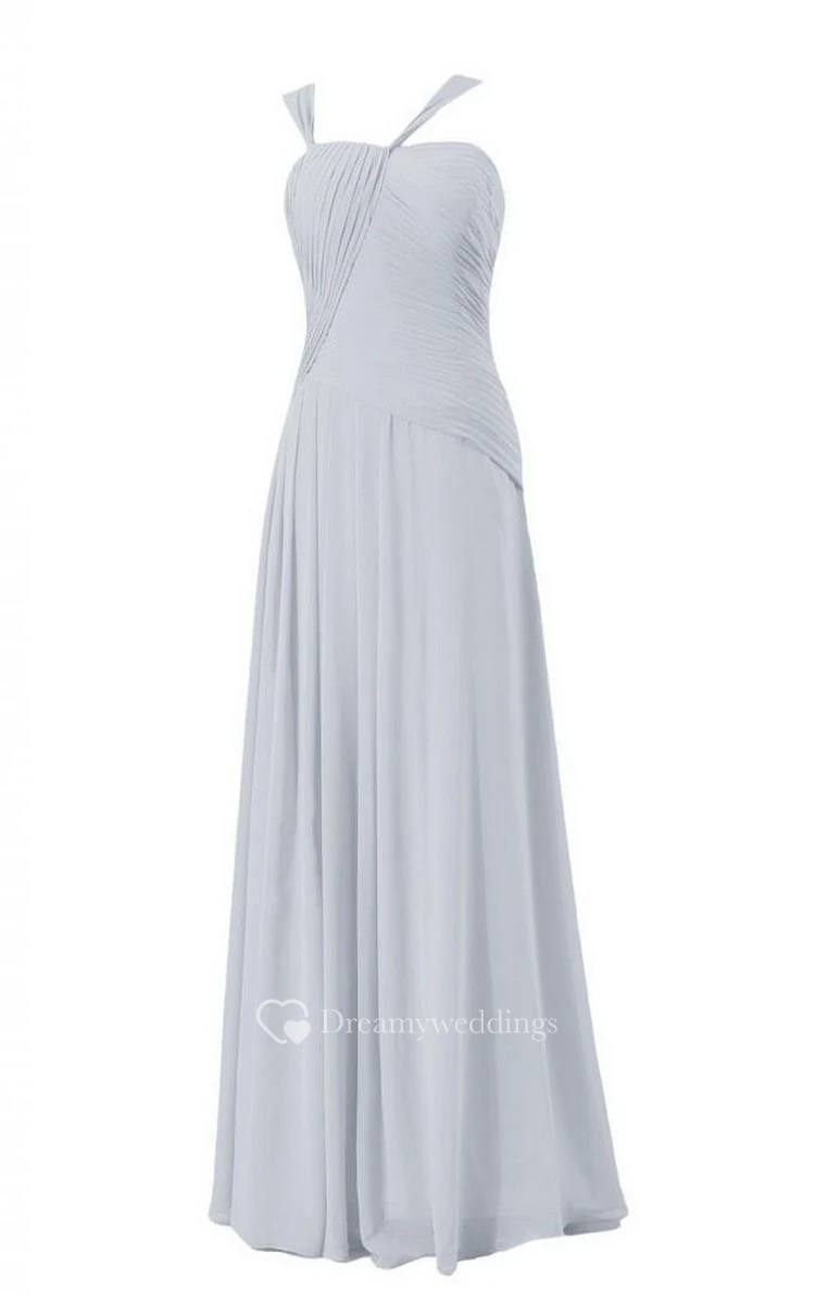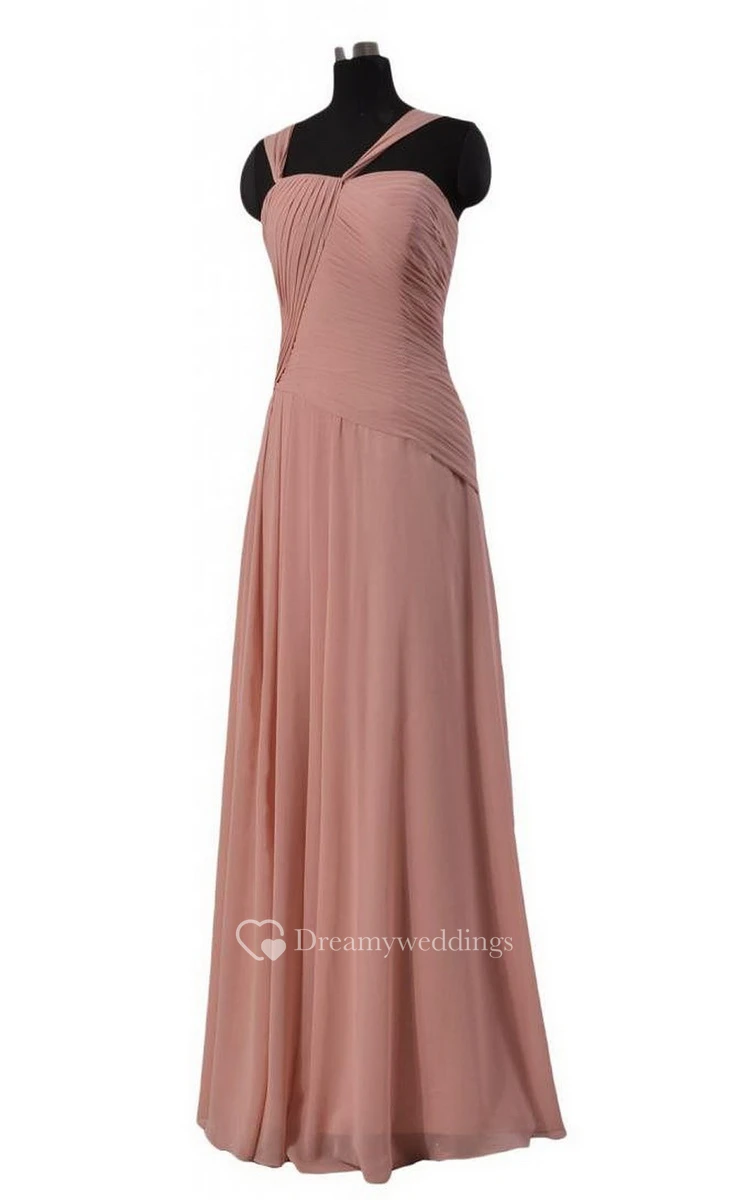Sleeveless Long Chiffon Dress With Asymmetrical Ruching