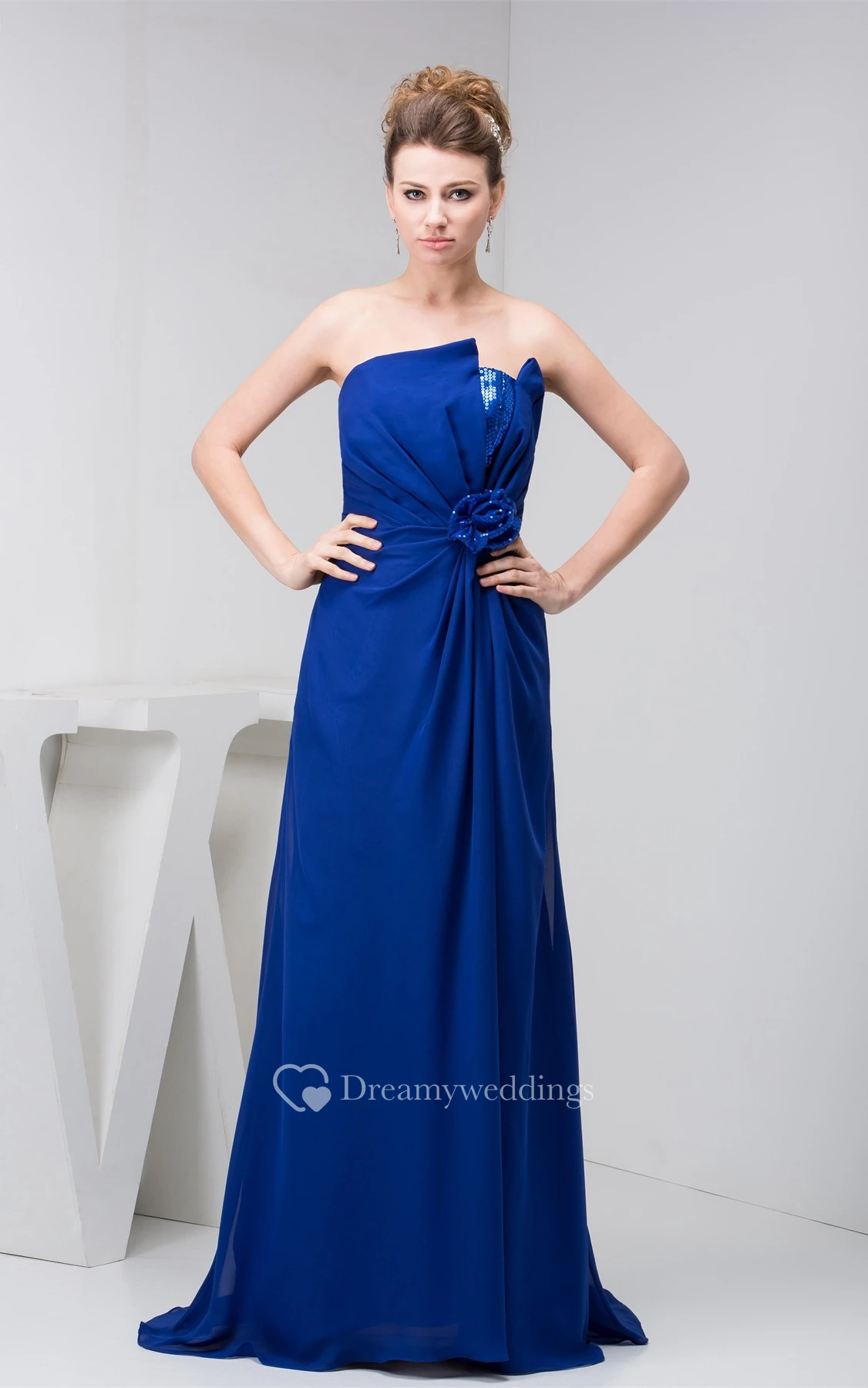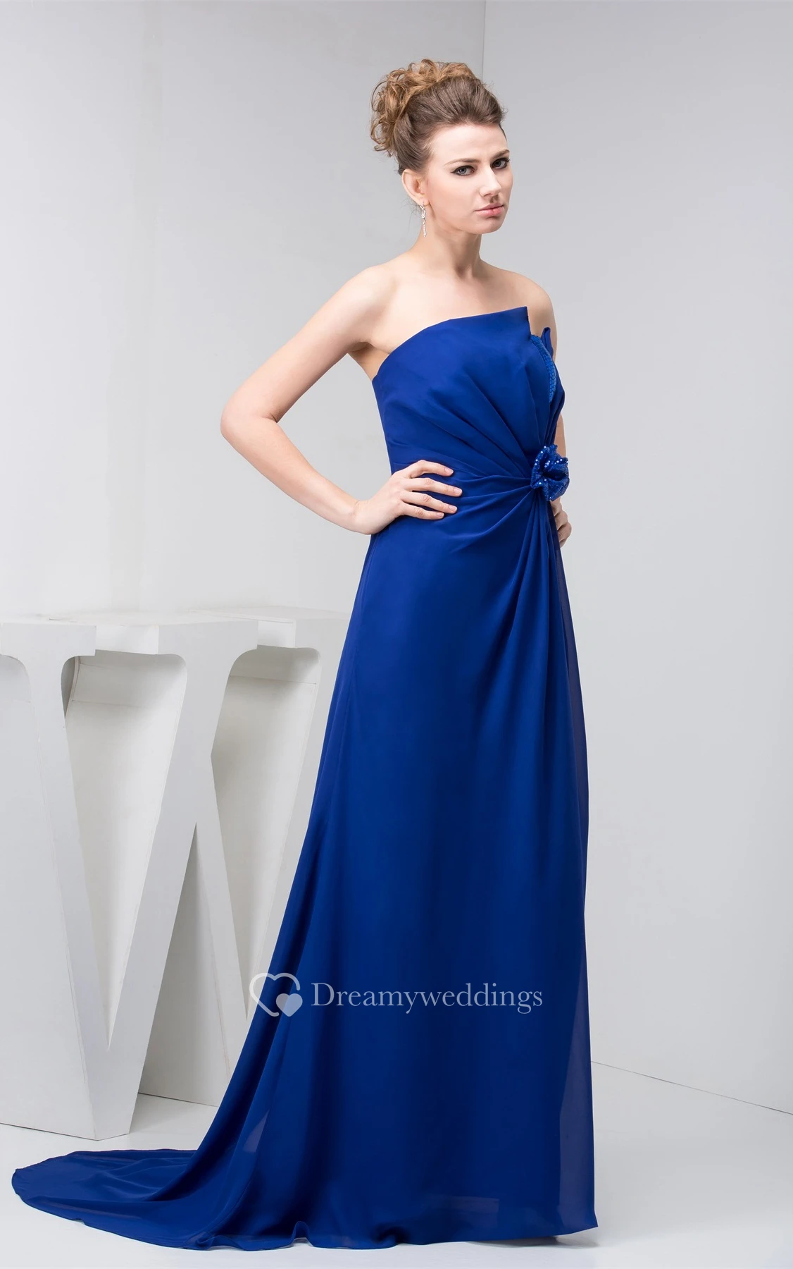 Sleeveless Maxi Chiffon Central Ruching and Dress With Flower