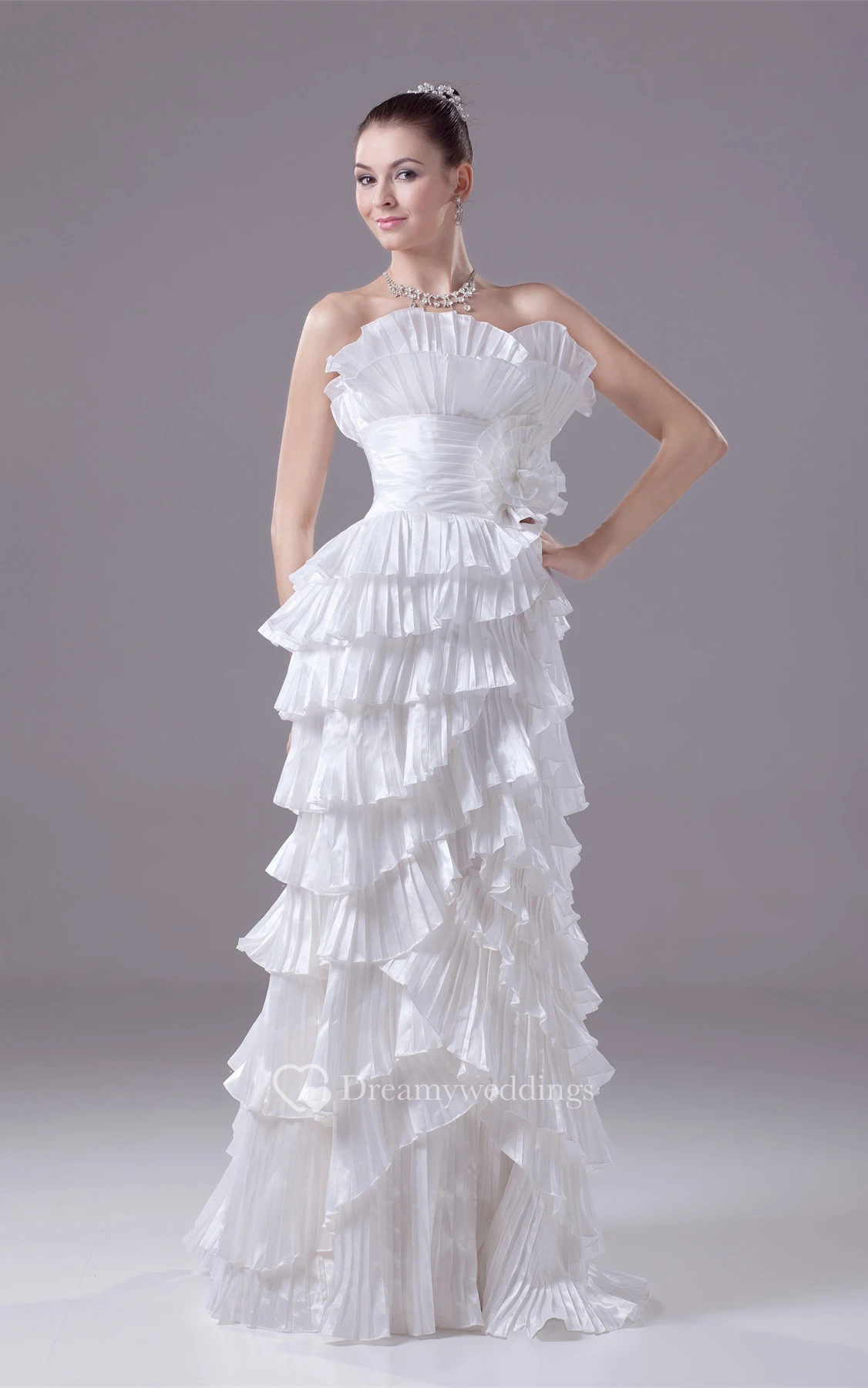 Sleeveless Maxi Tiered Flower and Dress With Ruching