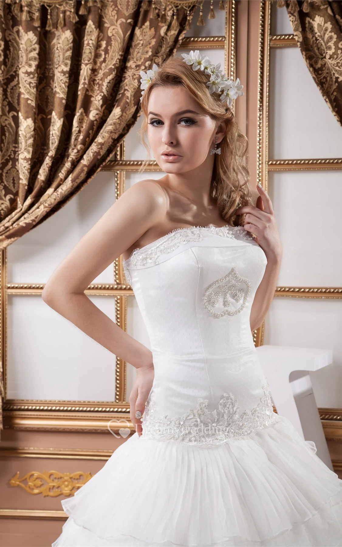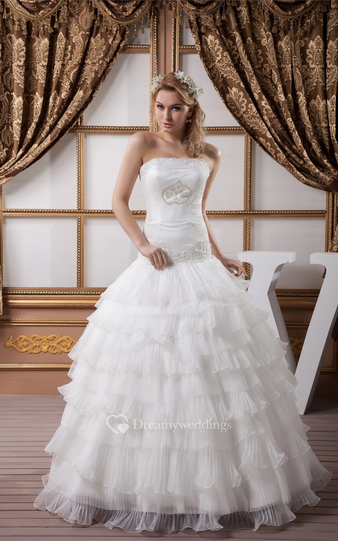 Sleeveless Ruched Appliques and Ball-Gown With Rhinestone