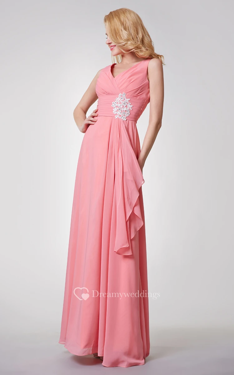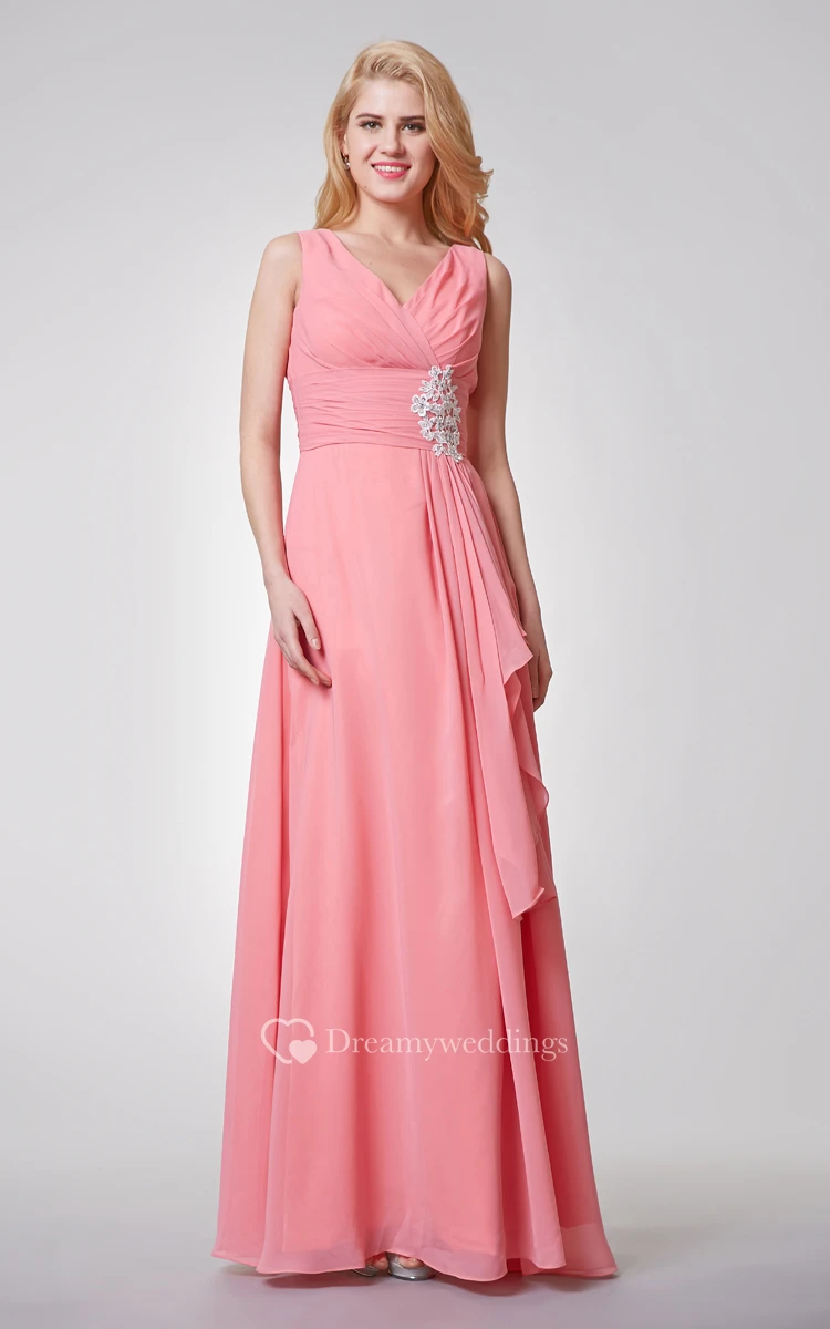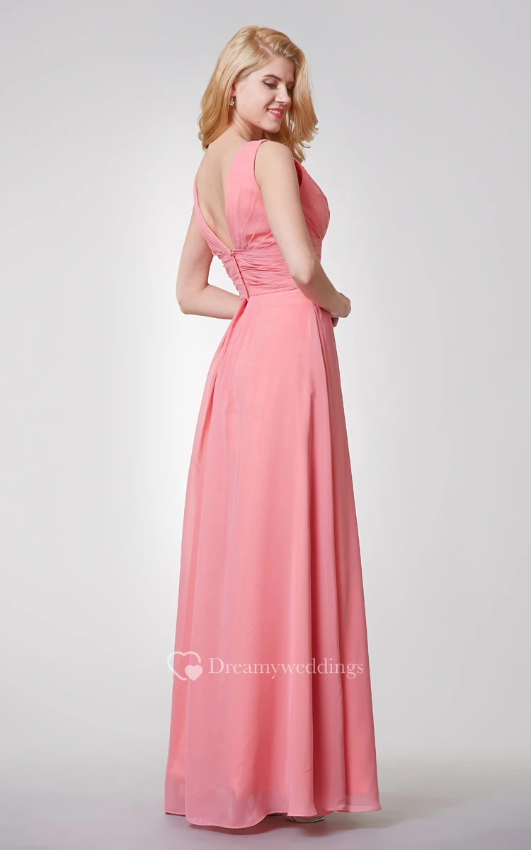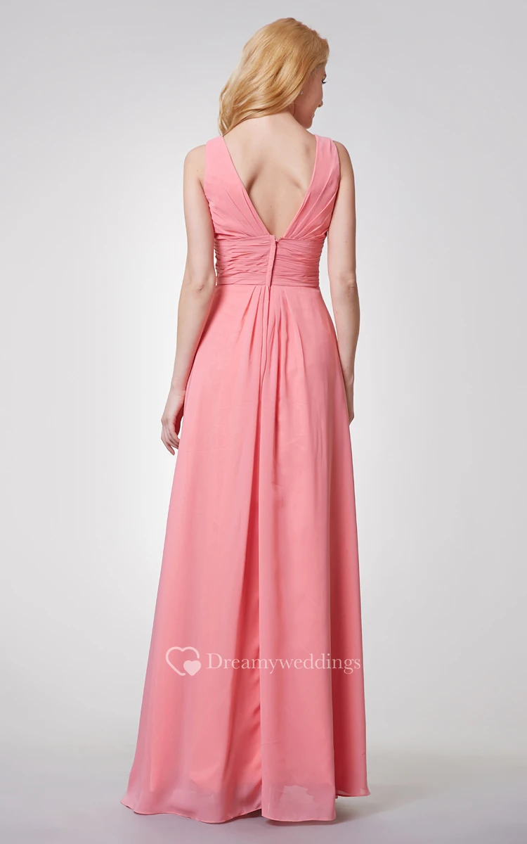 Sleeveless Ruched Long Chiffon Dress With Side Draping