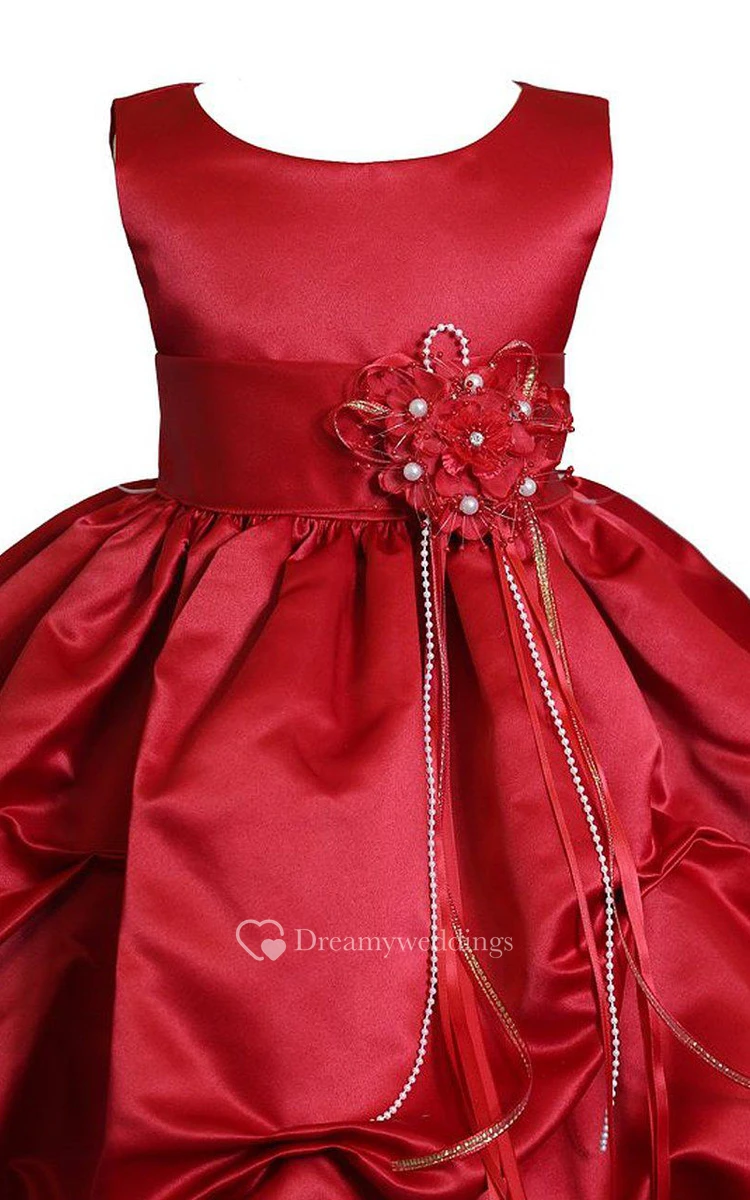 Sleeveless Ruffled Dress With Flower and Beadings