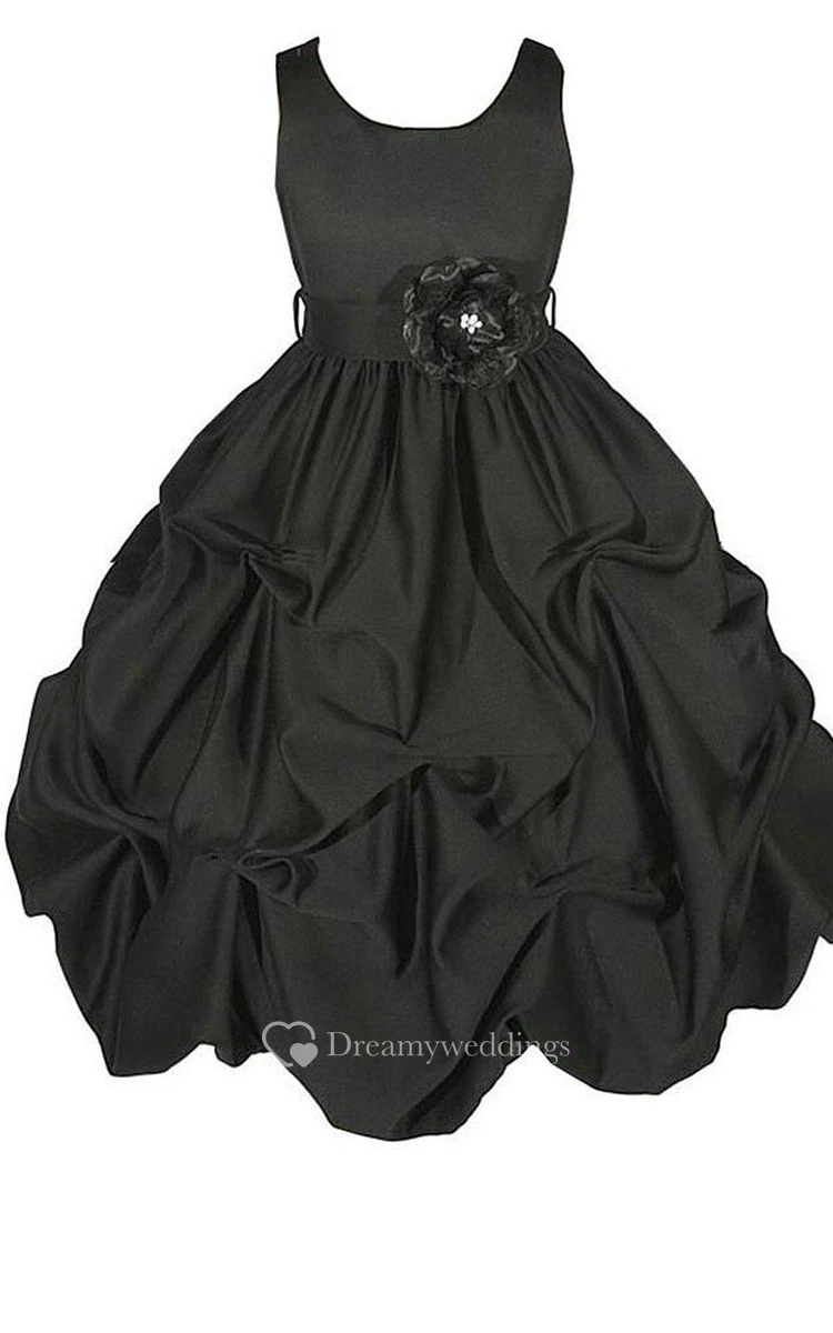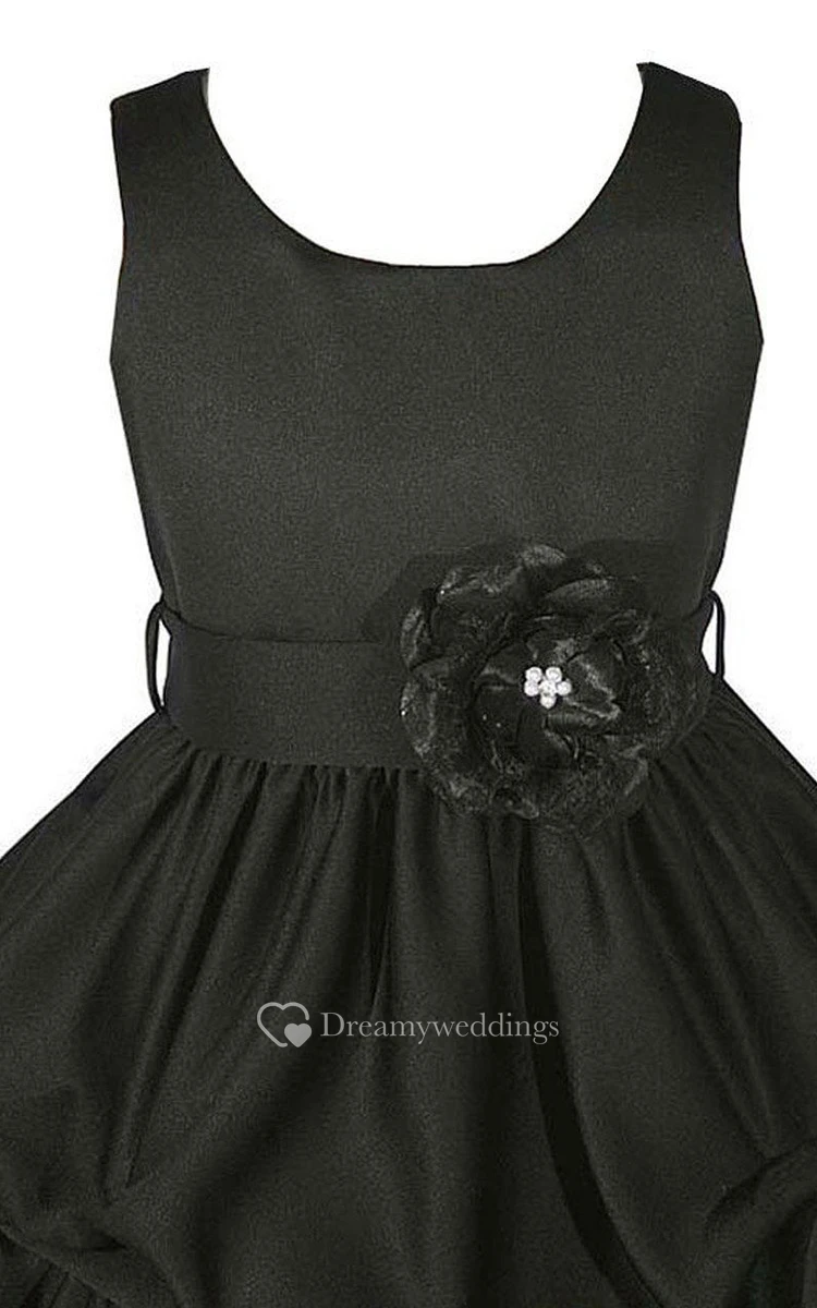 Sleeveless Ruffled Dress With Scoop Neck and Flower