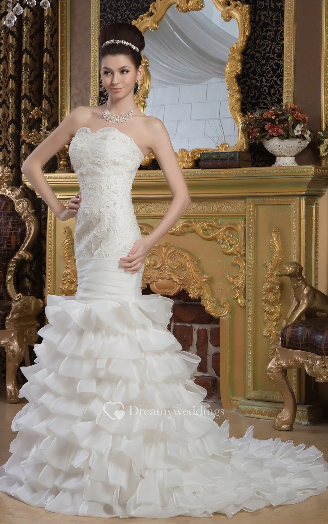 Sleeveless Ruffled Mermaid Tiers and Gown With Appliques