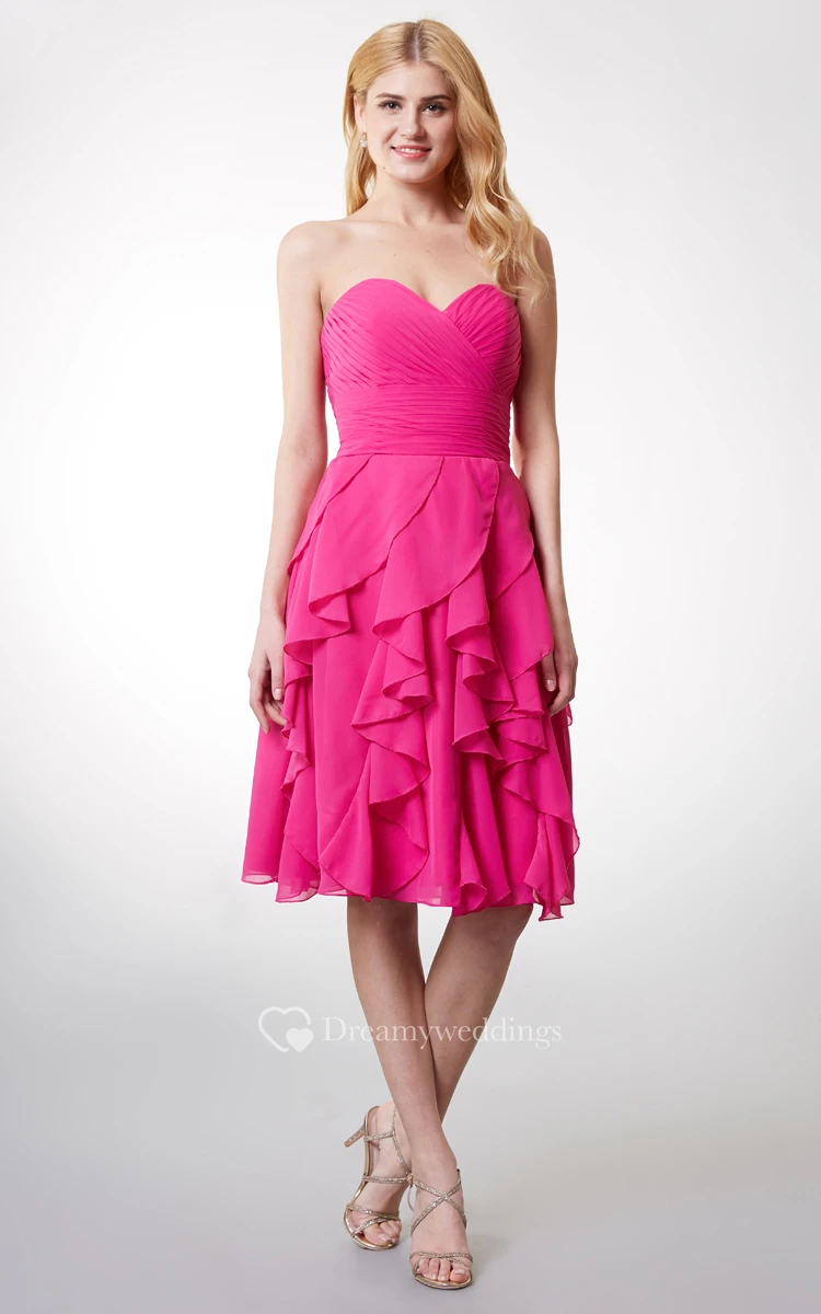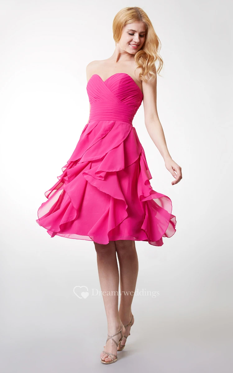 Sleeveless Ruffled Short Chiffon Dress With Ruching