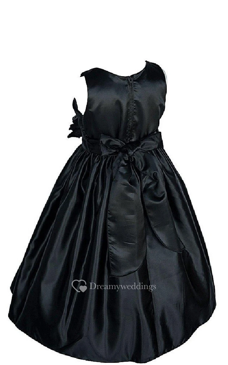 Sleeveless Ruffled Taffeta Dress With Flower Waist