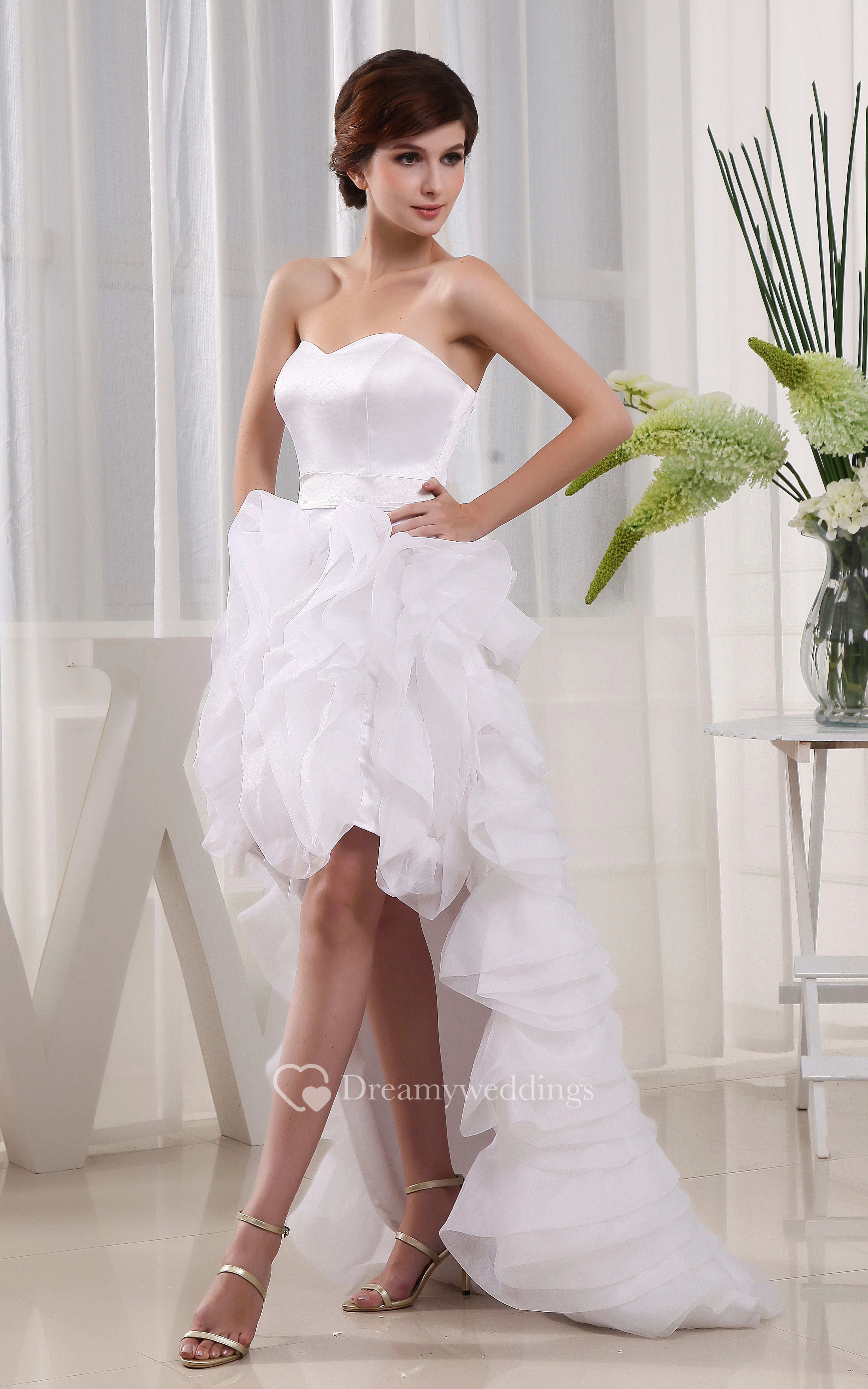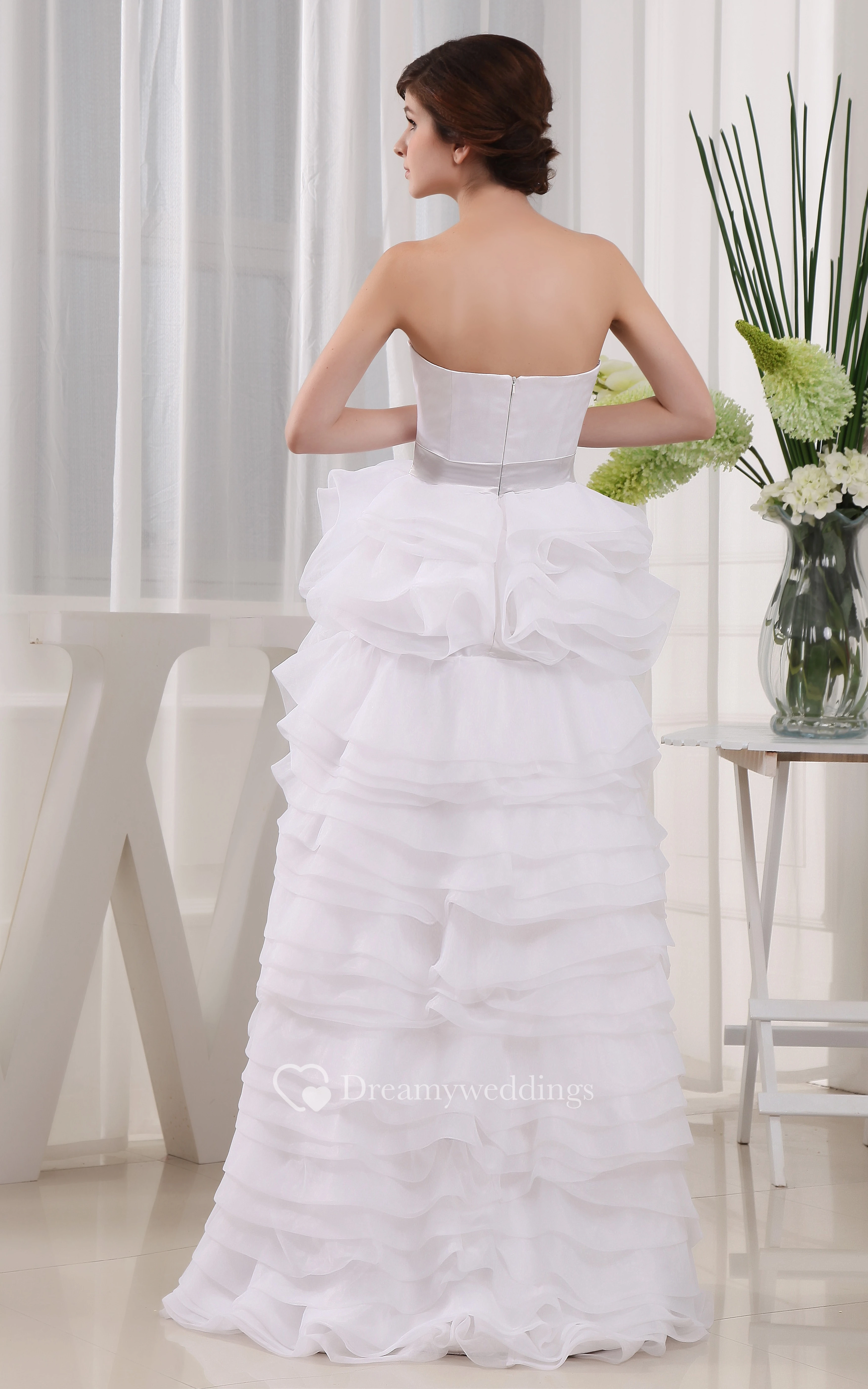 Sleeveless Satin Dress With Ruffles and Tiers