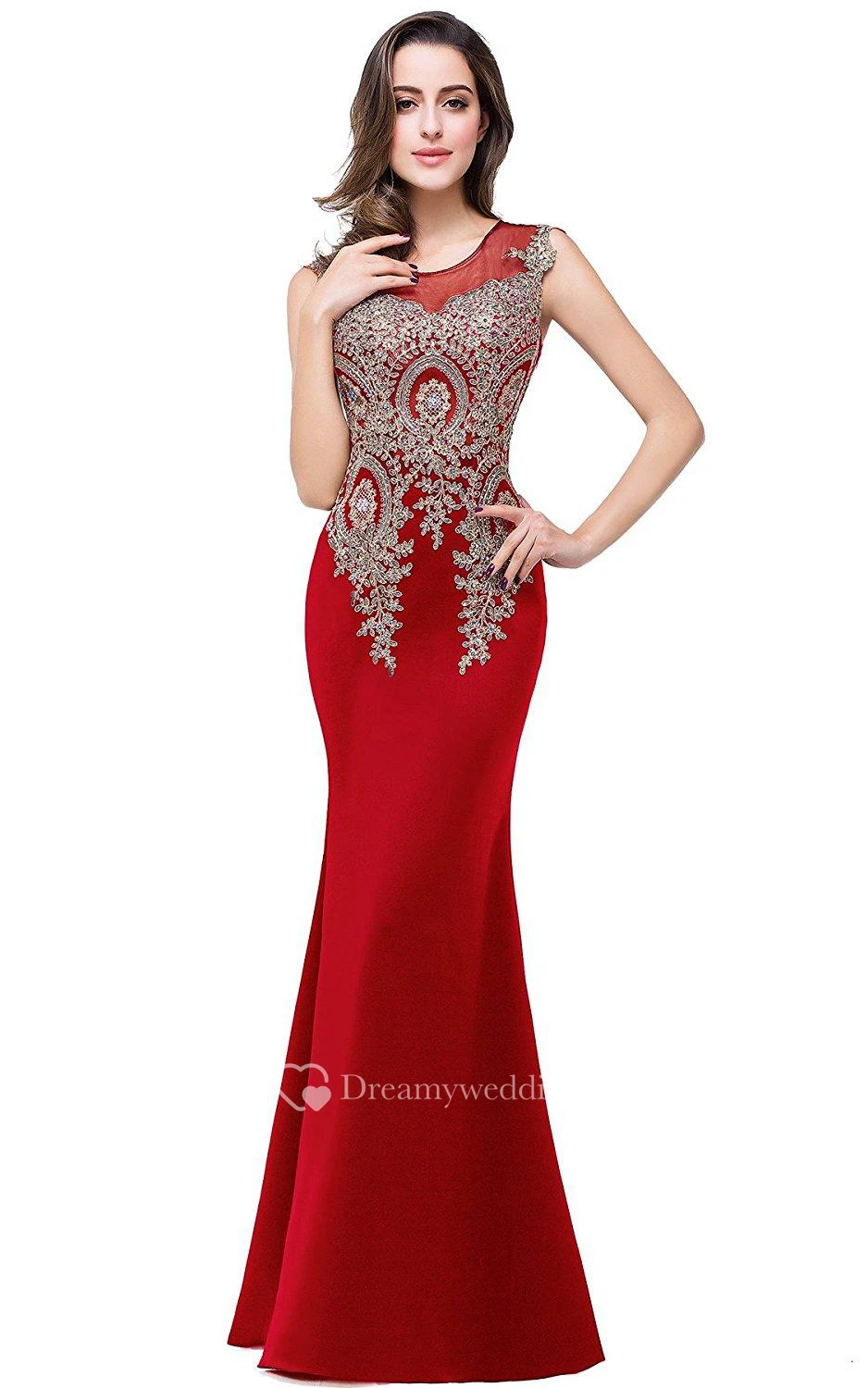 Sleeveless Satin Mermaid Dress with Scoop Neckline