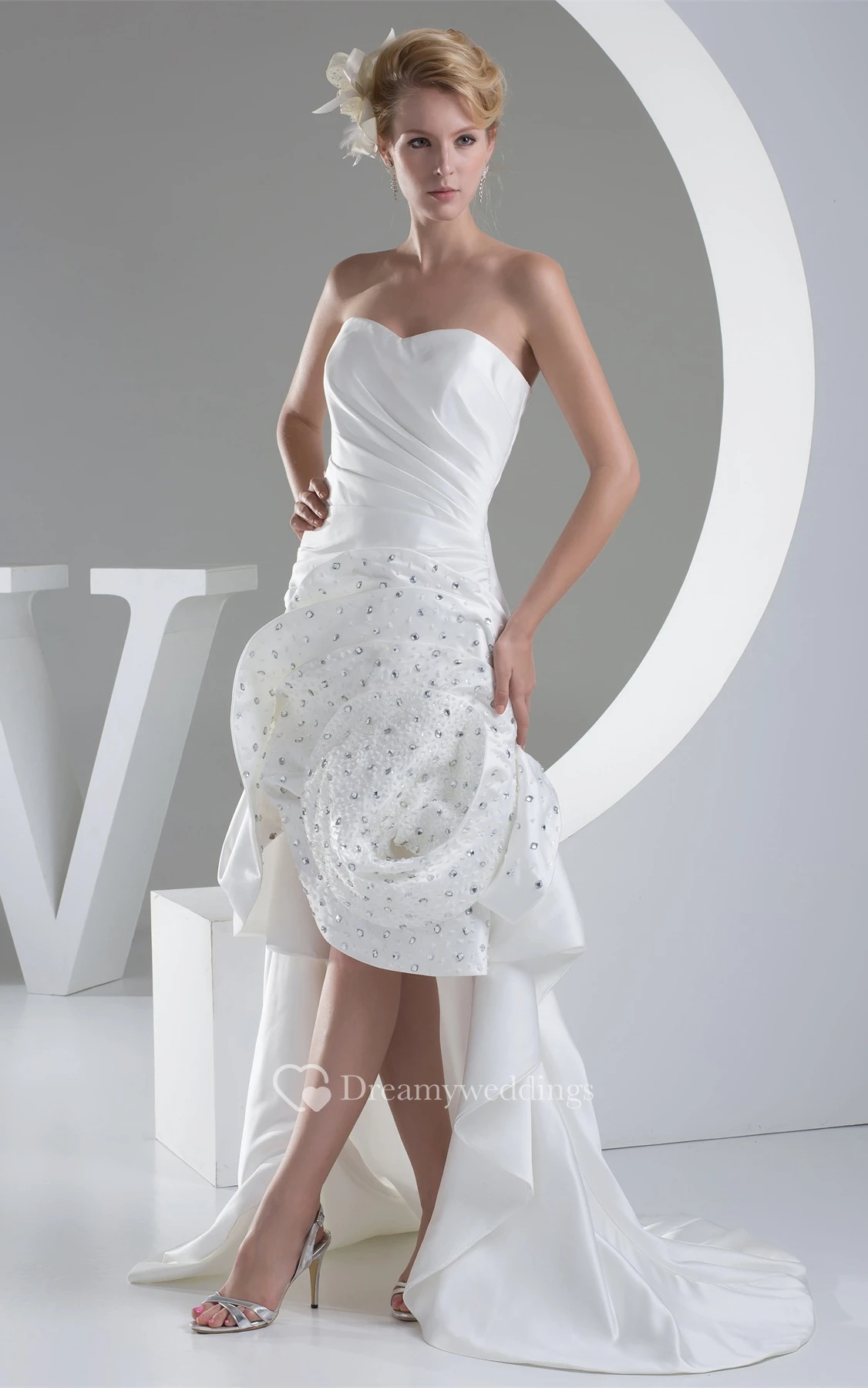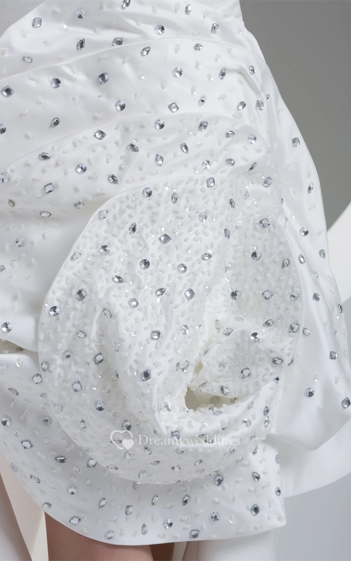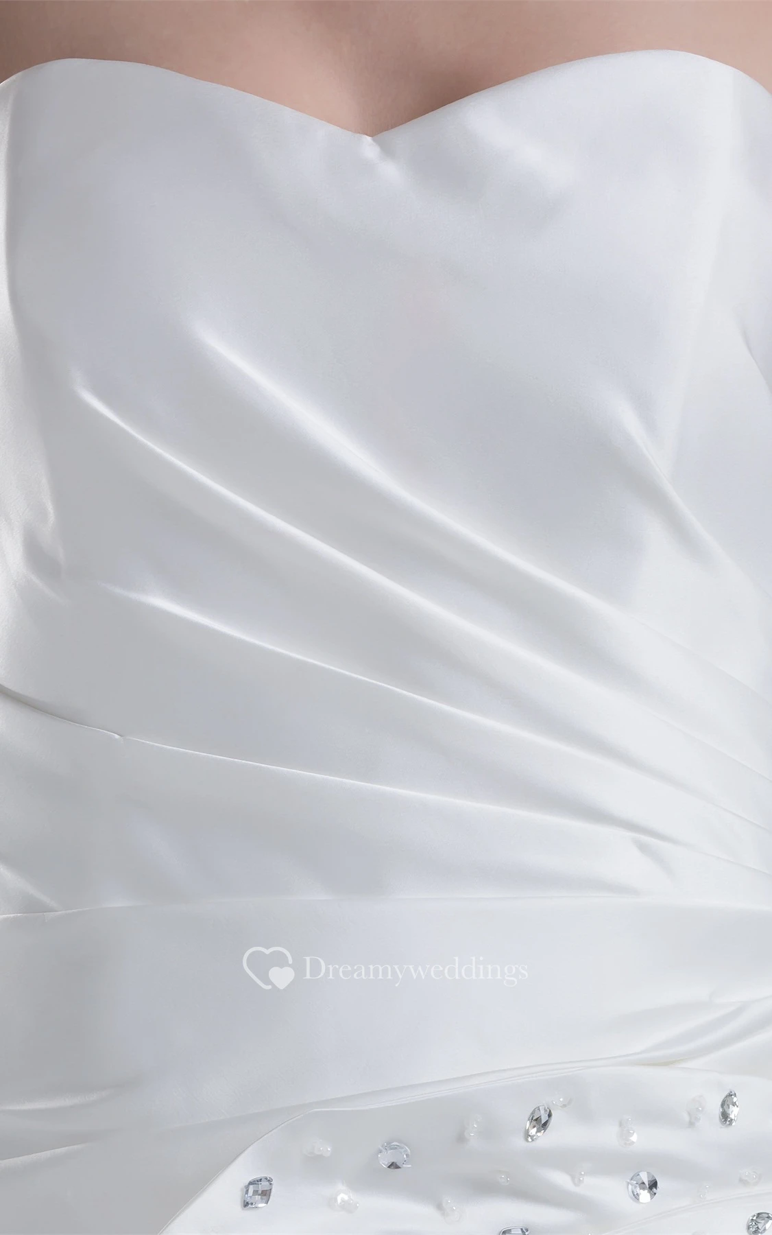 Sleeveless Satin Ruched Brush Train and Dress With Rhinestone