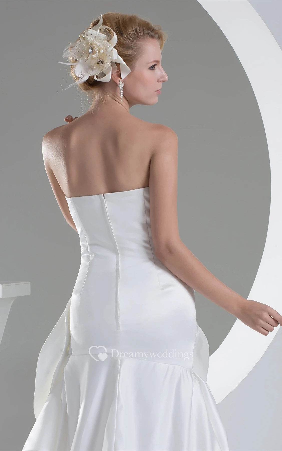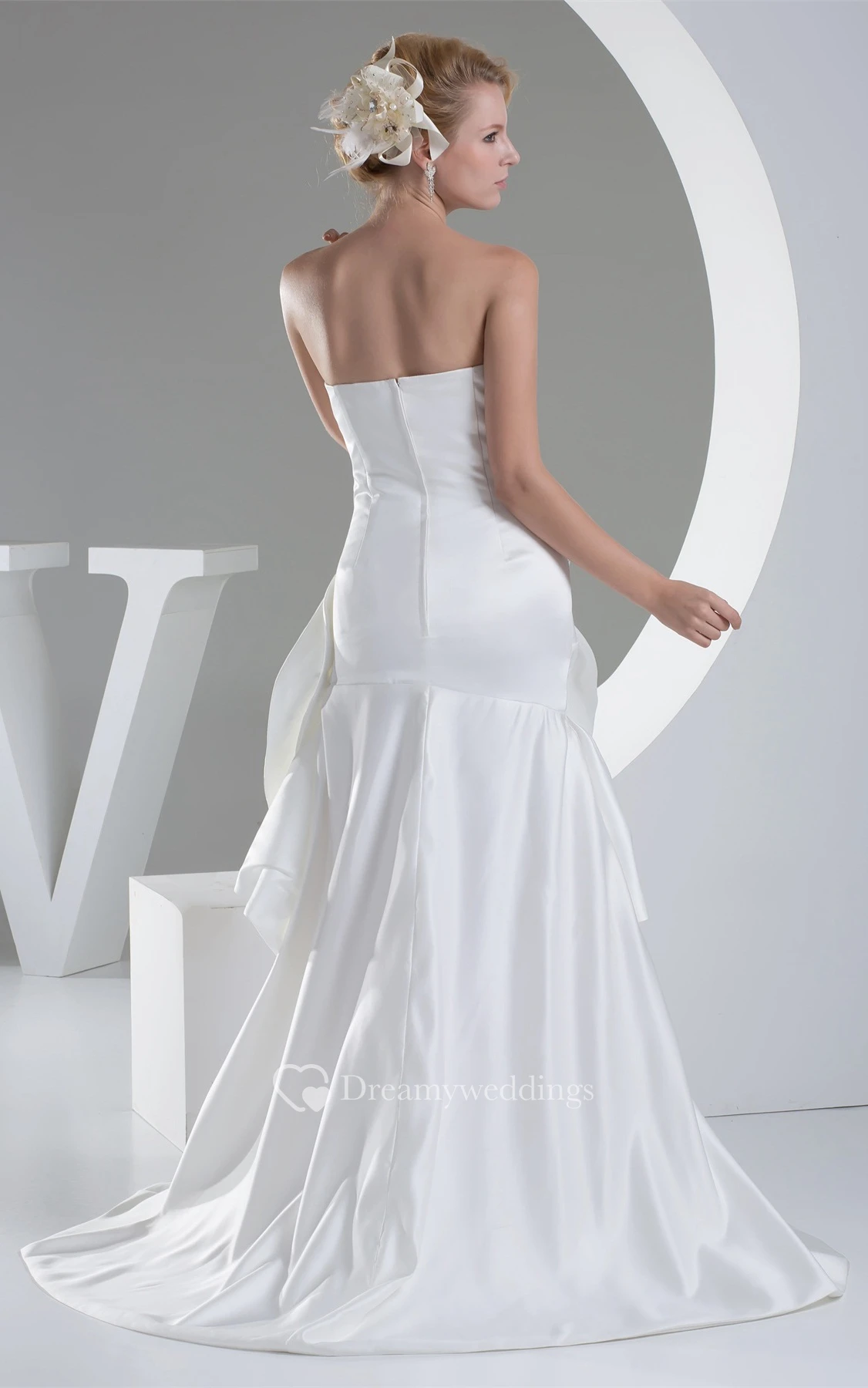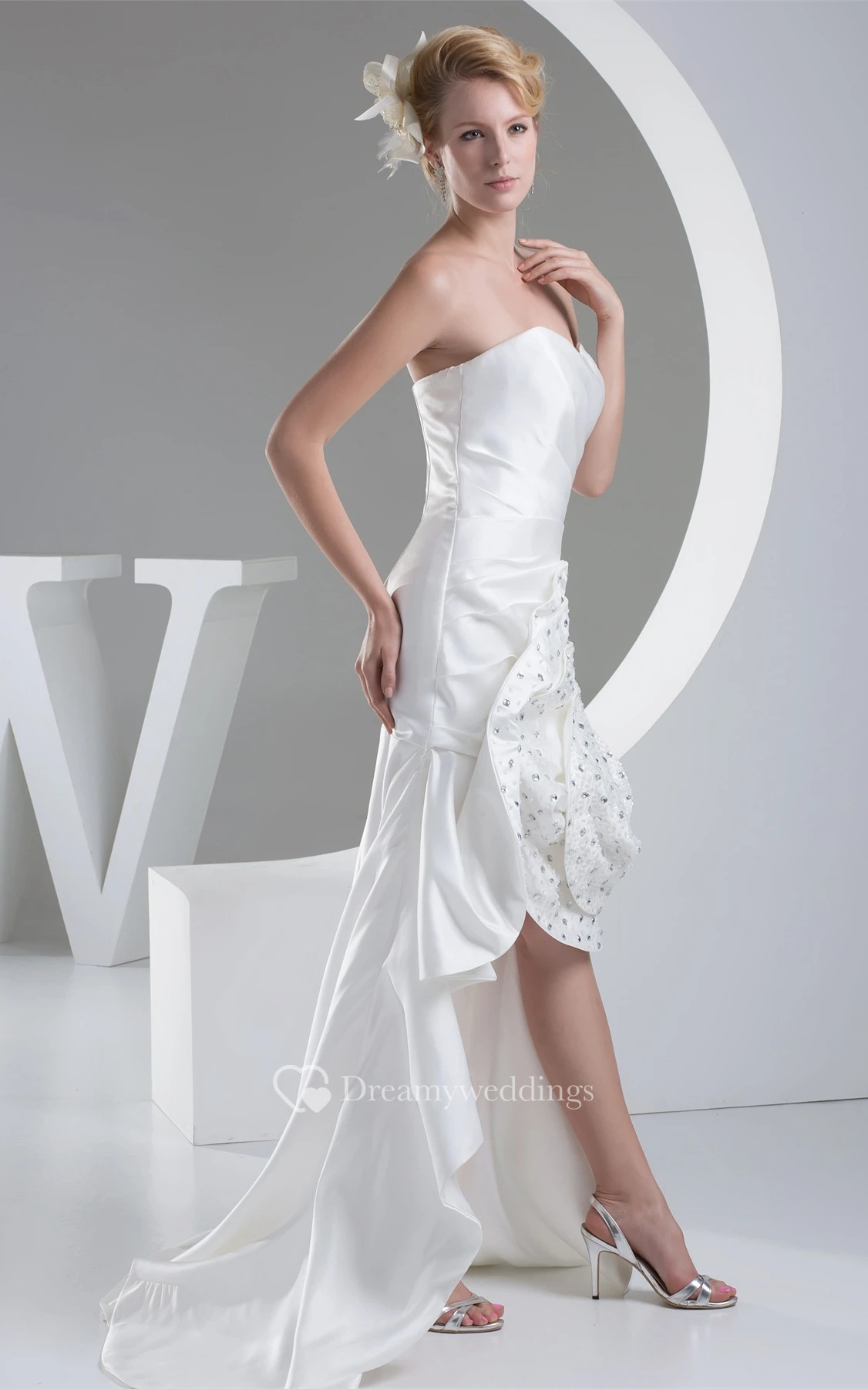 Sleeveless Satin Ruched Brush Train and Dress With Rhinestone