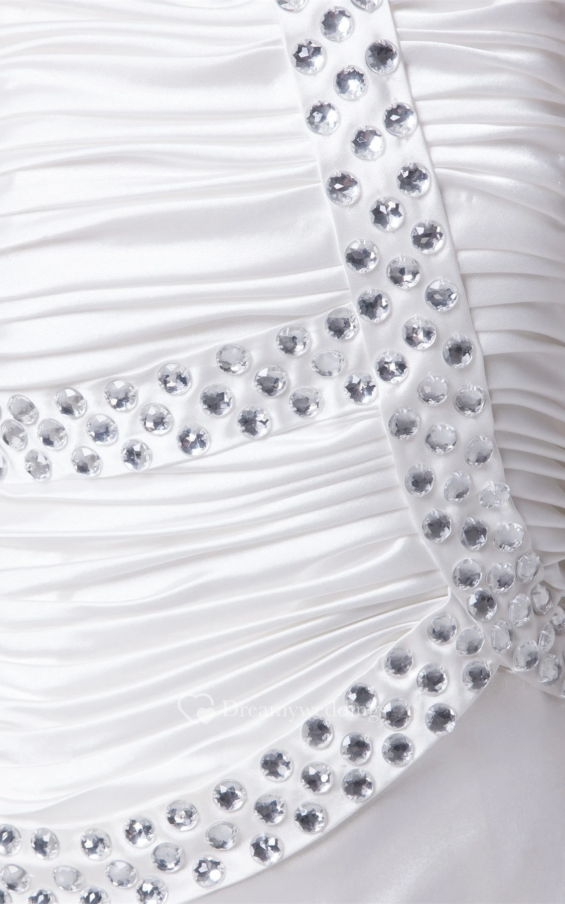 Sleeveless Satin Short Ruched Gown With Rhinestone
