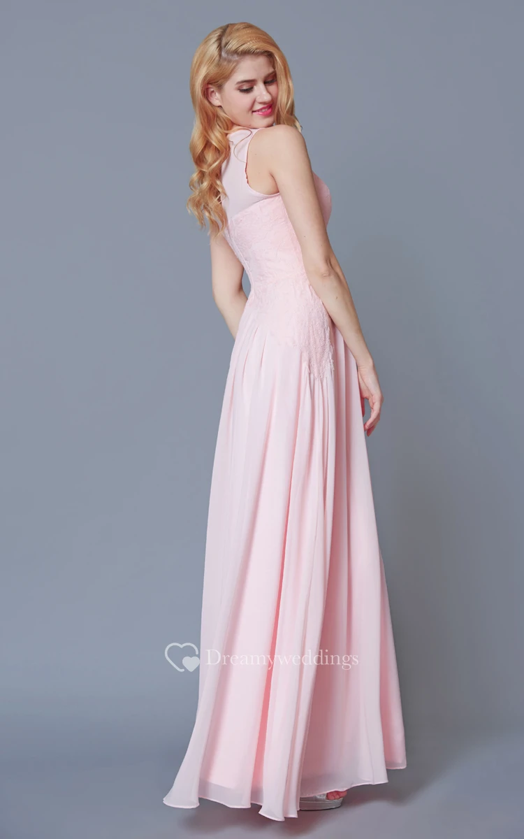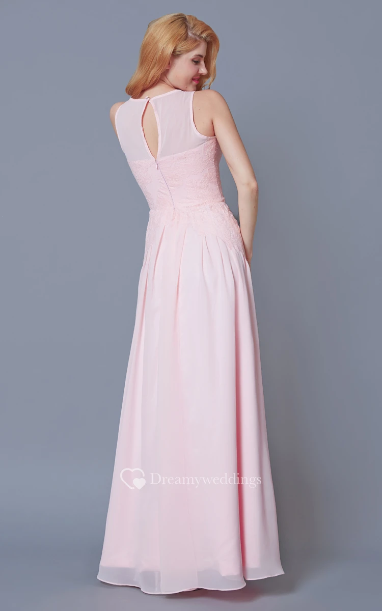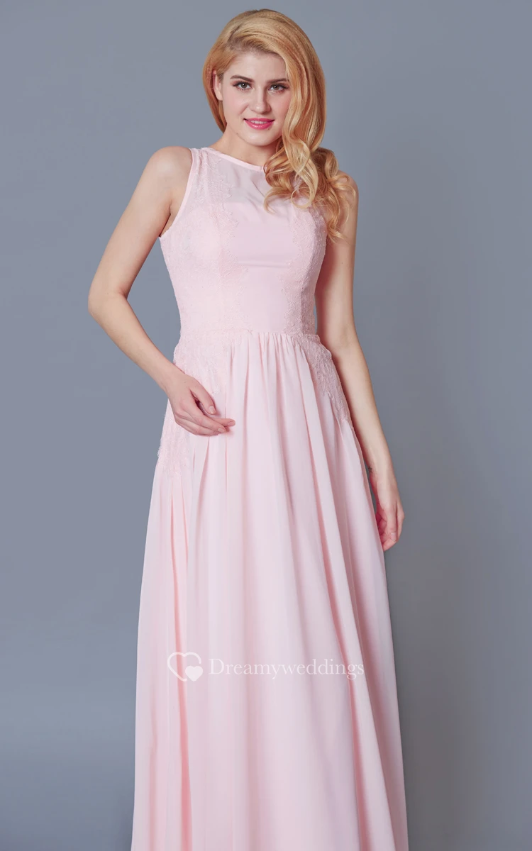 Sleeveless Scoop Neck A-line Chiffon Dress With Lace Detailing