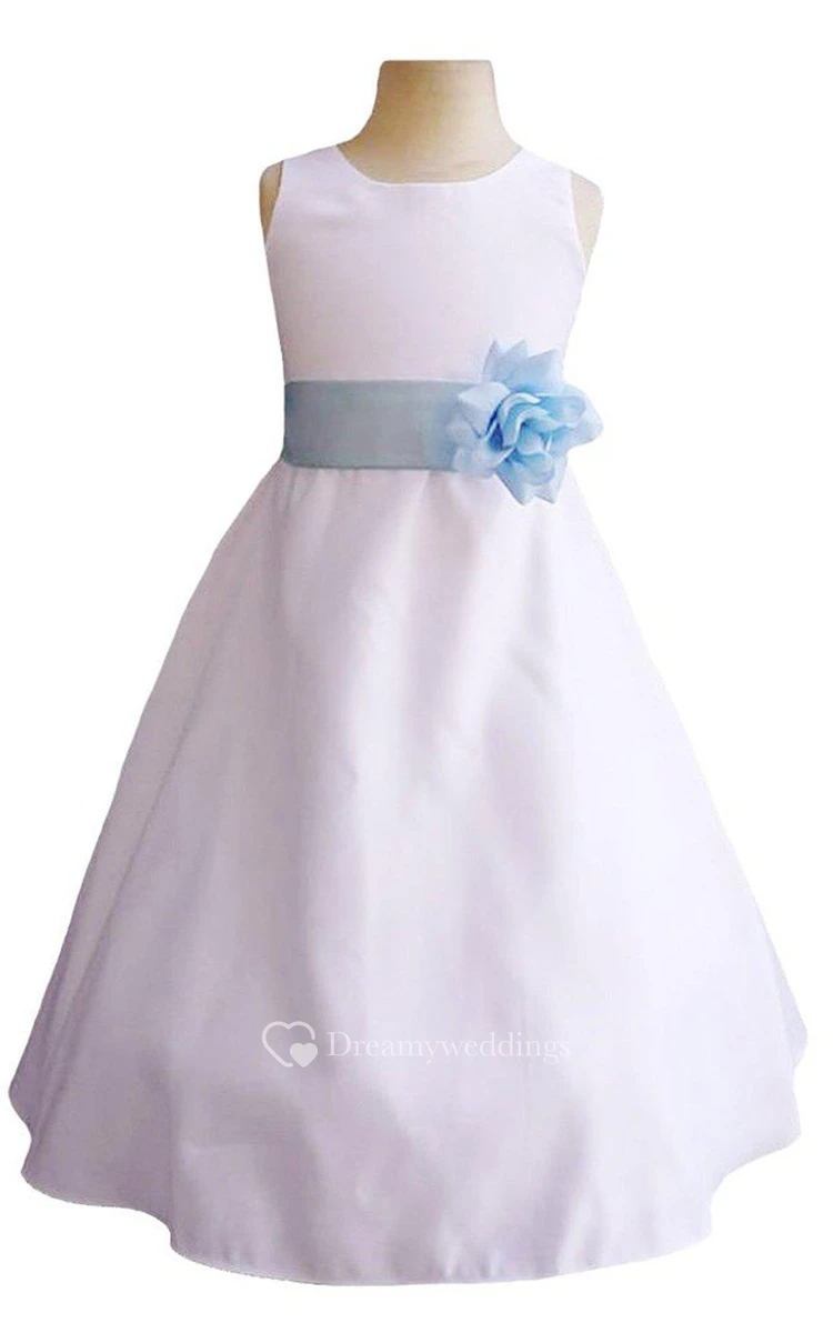 Sleeveless Scoop-neck A-line Dress With Belt and Flower