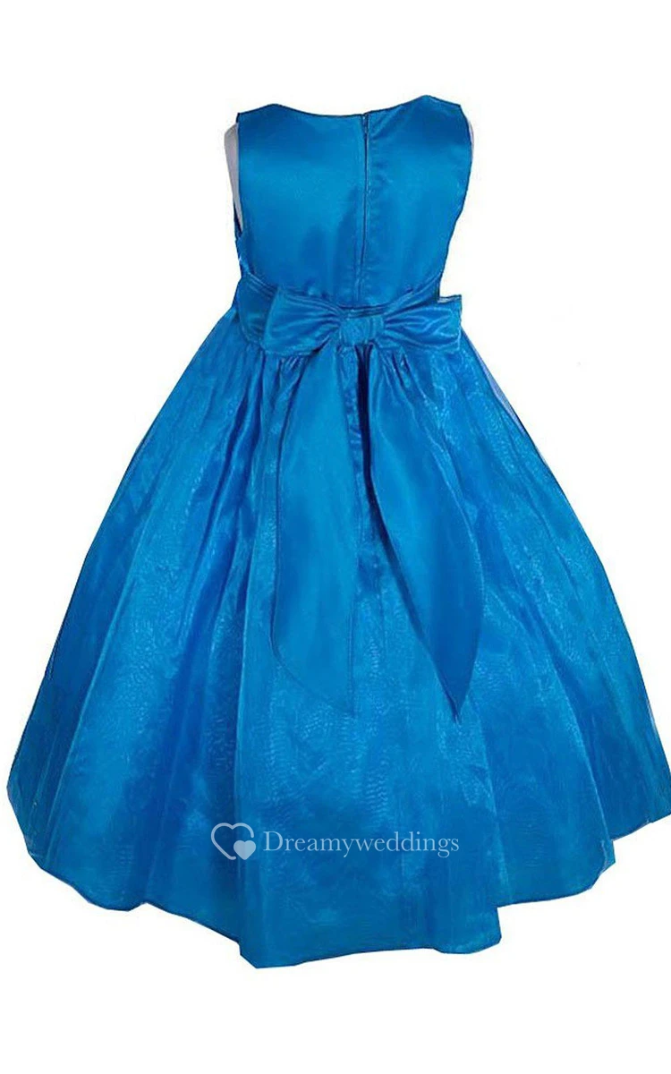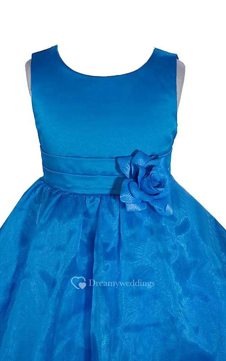 Sleeveless Scoop-neck A-line Dress With Flower and Bow