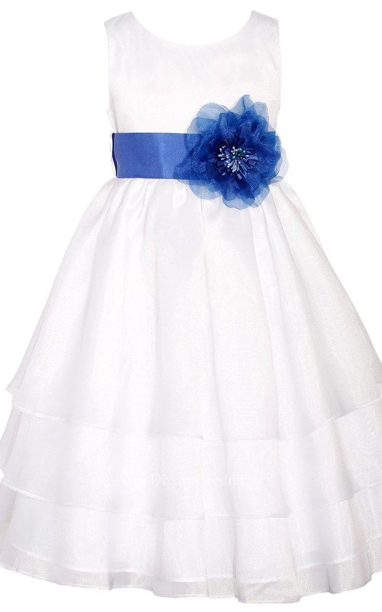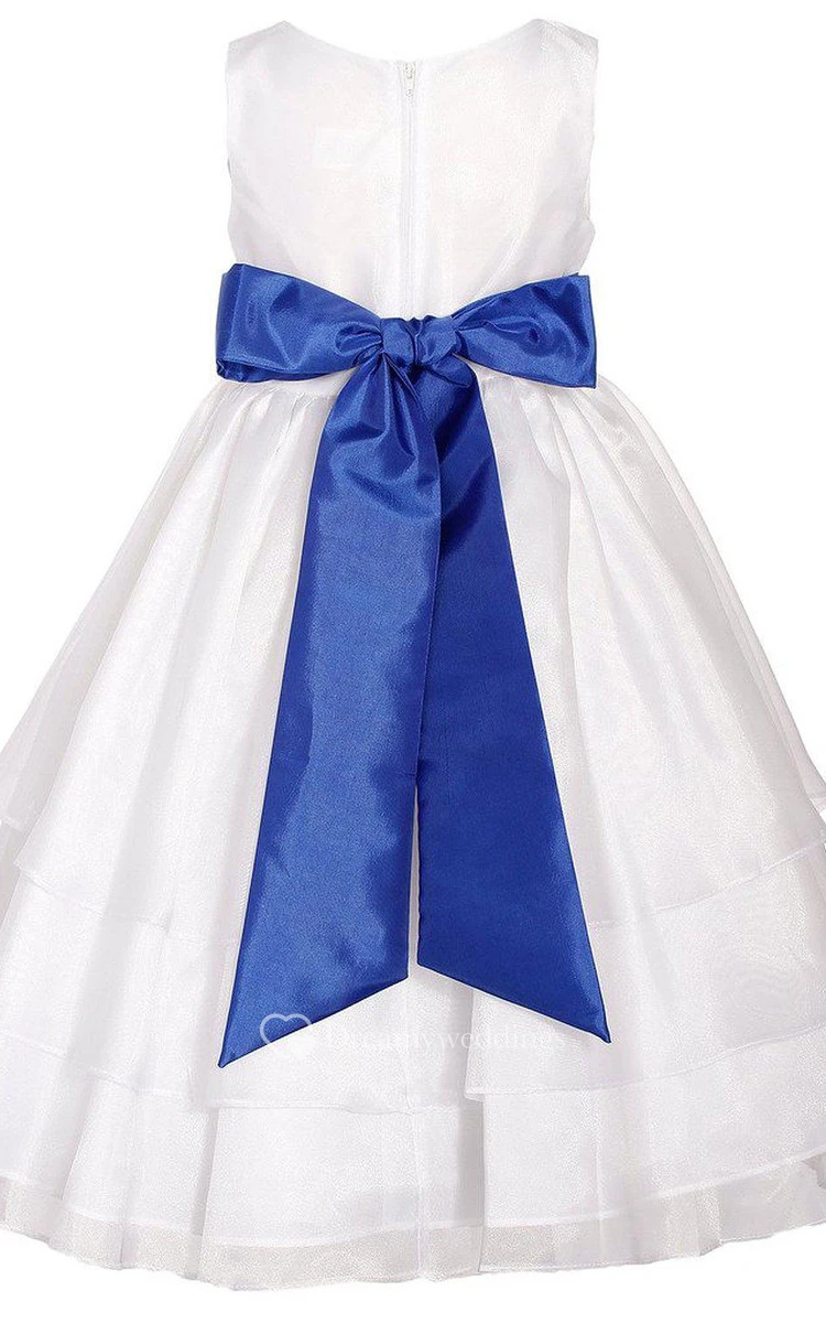 Sleeveless Scoop-neck A-line Dress With Flower and Bow