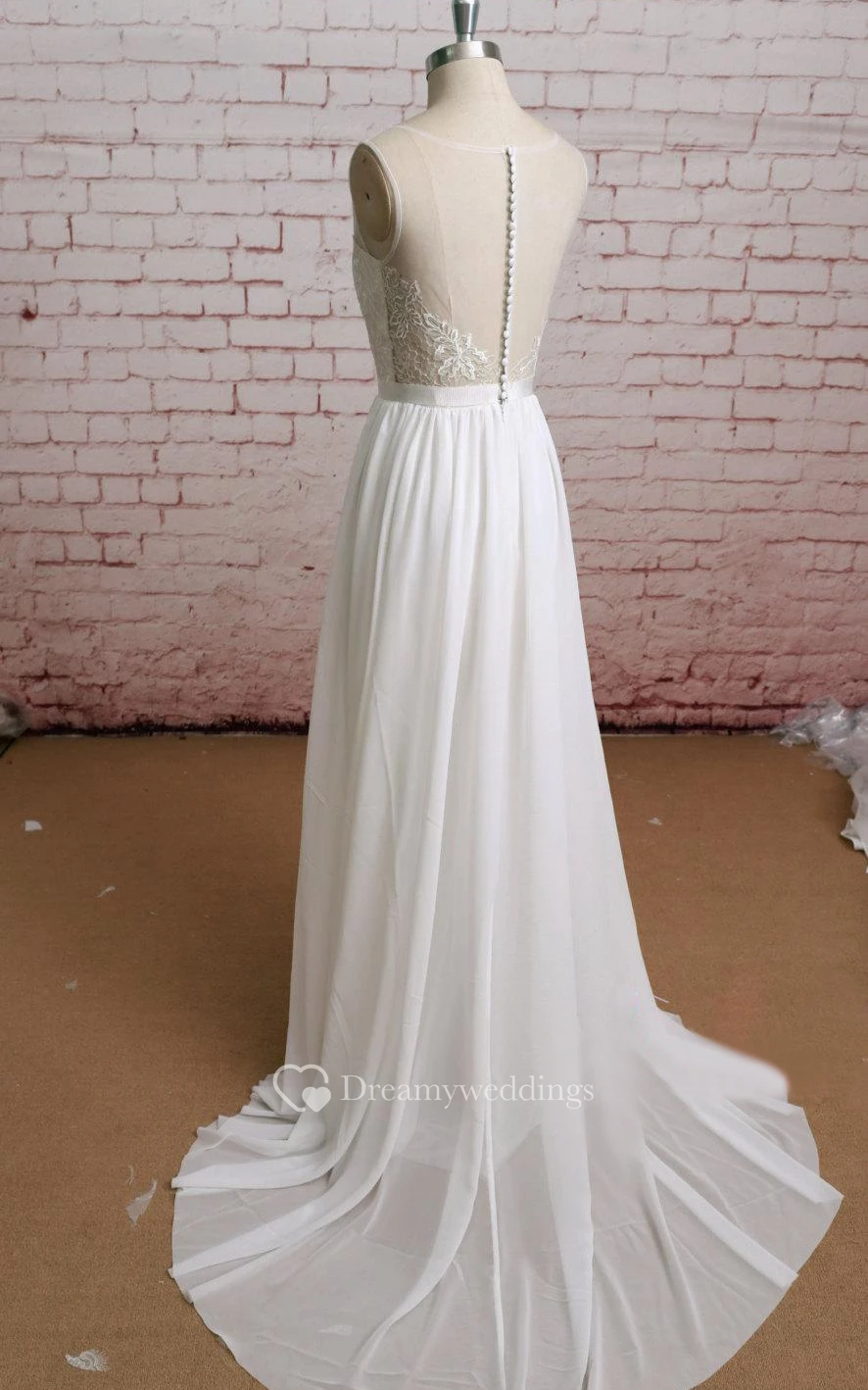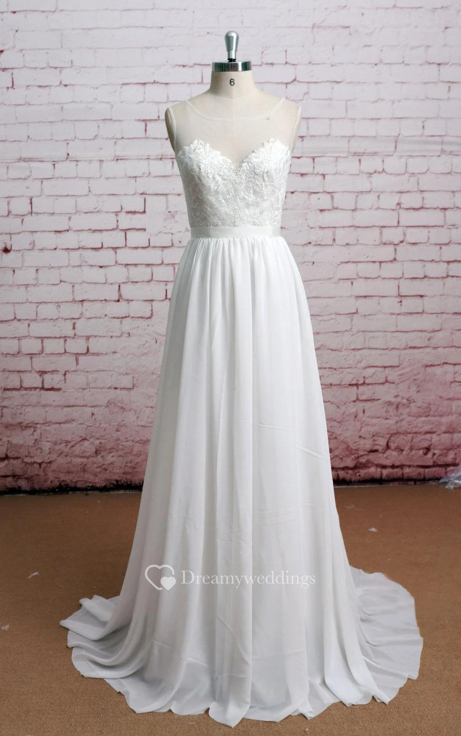 Sleeveless Scoop Neck A-Line Lace and Chiffon Dress With Illusion Back
