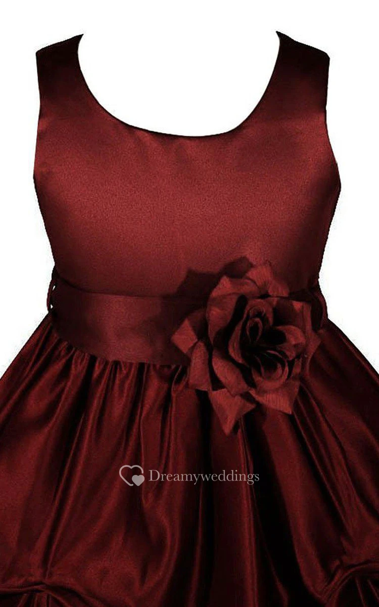 Sleeveless Scoop-neck Dress With Ruffles and Flower