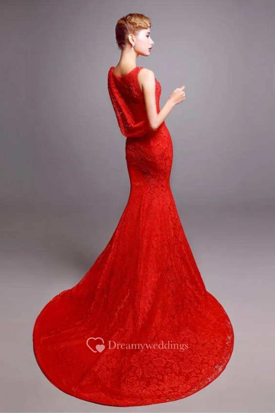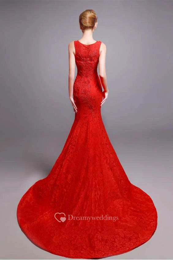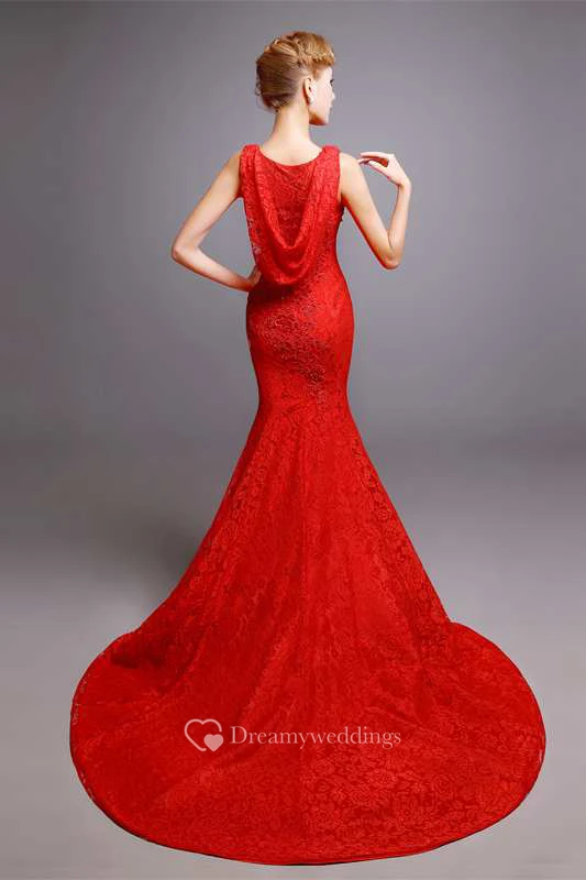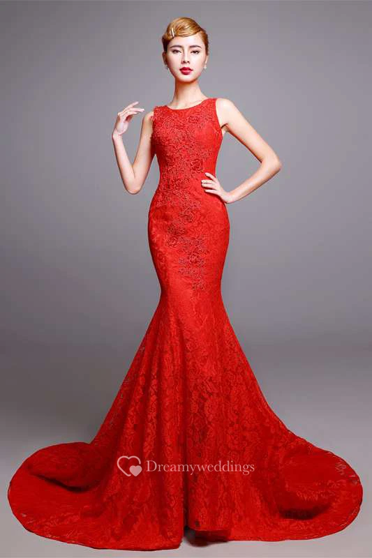 Sleeveless Scoop Neck Mermaid Lace Dress