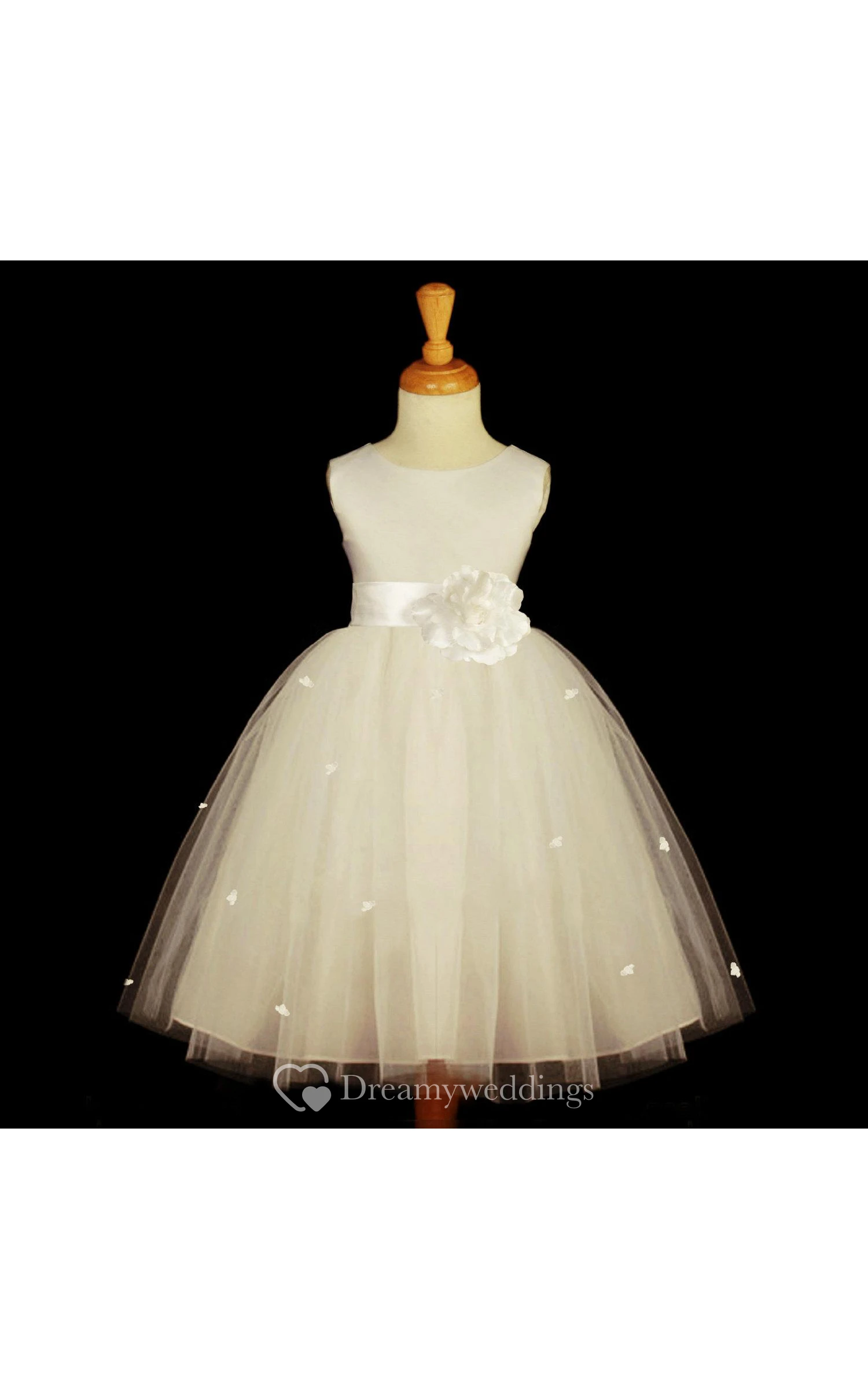 Sleeveless Scoop Neckline Empire Tulle Ball Gown With Flower and Bow