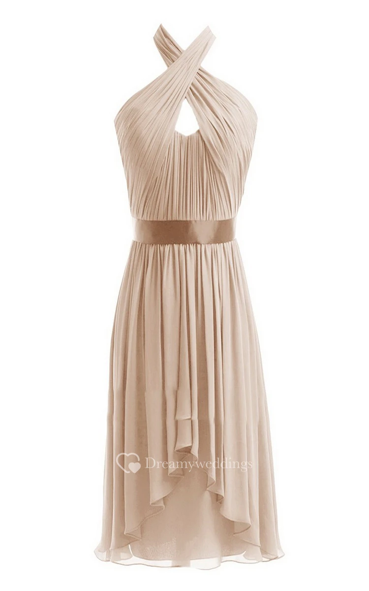 Sleeveless Short Chiffon Dress With Crisscross Neck
