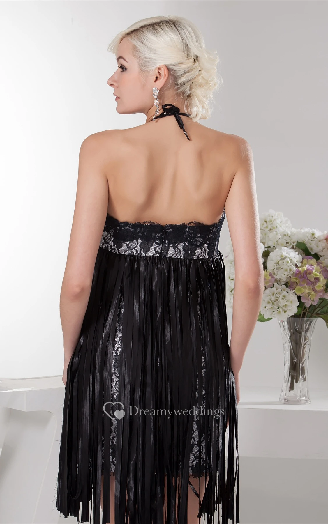 Sleeveless Short Fitted Halter and Dress With Lace