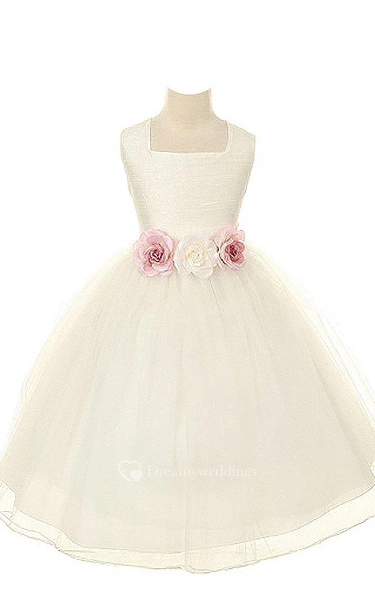 Sleeveless Square-neck A-line Dress With Flowers