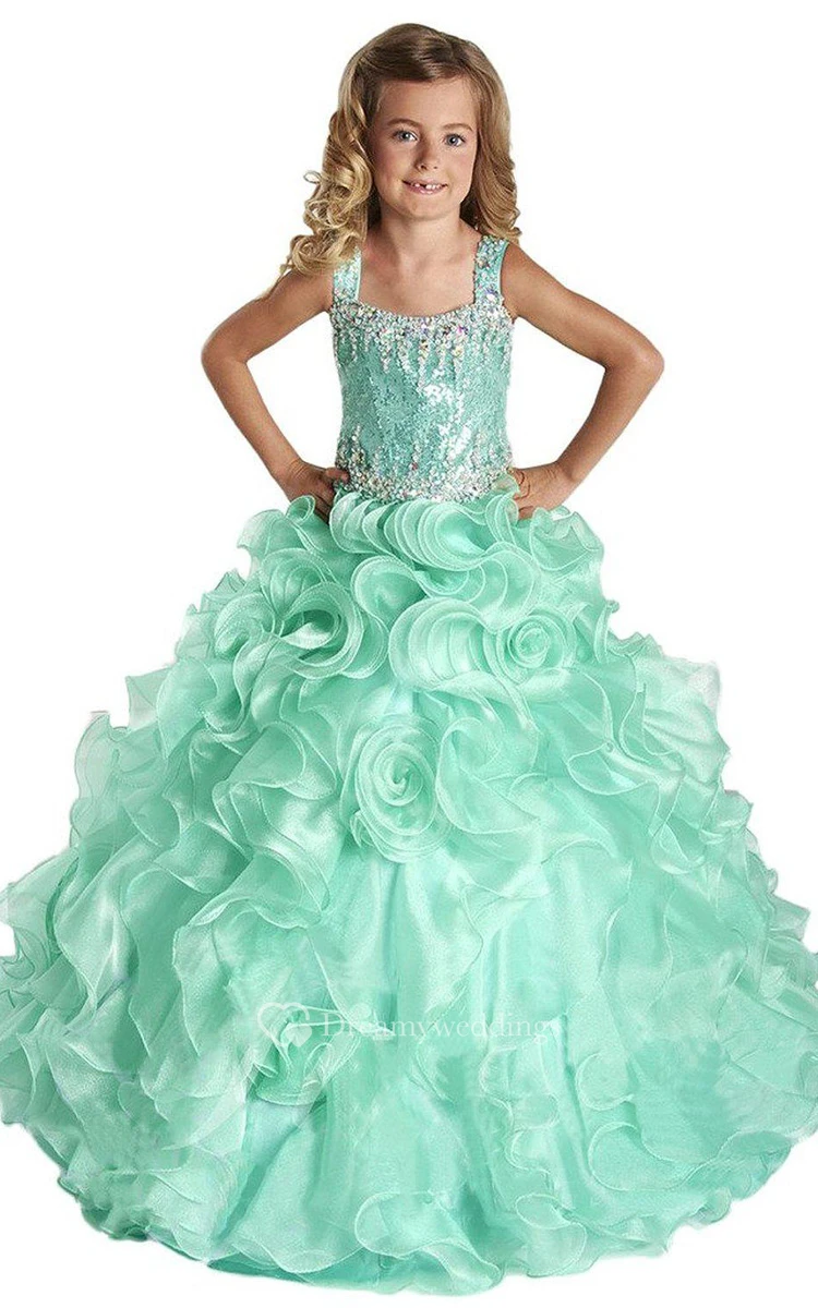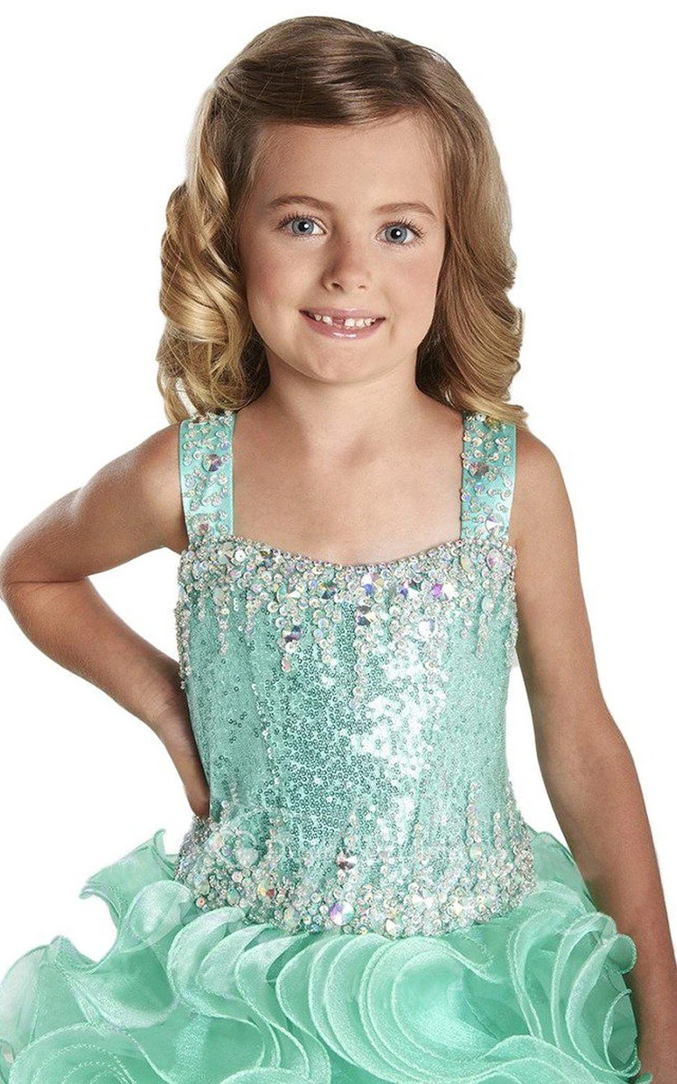 Sleeveless Square-neck A-line Dress With Sequins and Ruffles