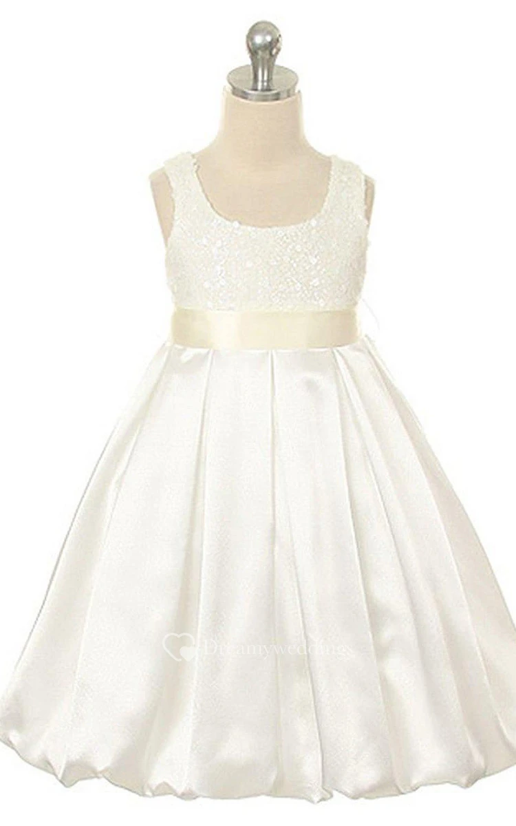 Sleeveless Square-neck Pleated Dress With Sequins