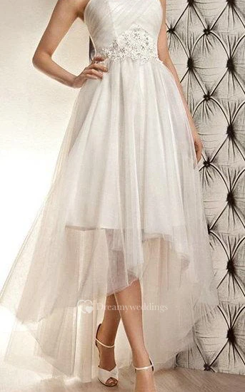 Sleeveless Strapless A-Line Tulle Dress With Open Back and Beaded Band