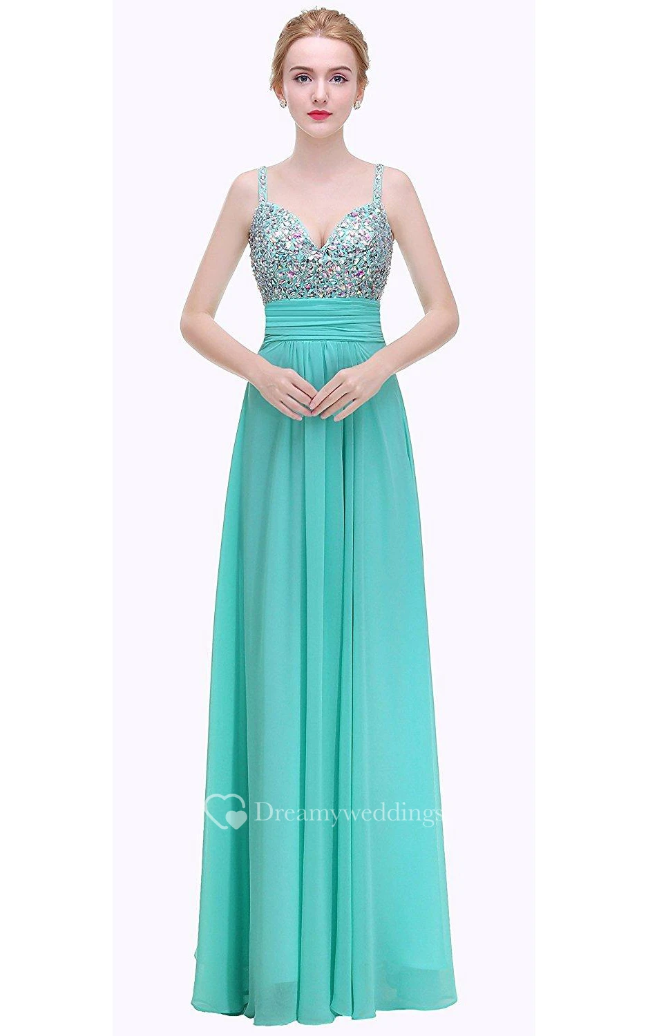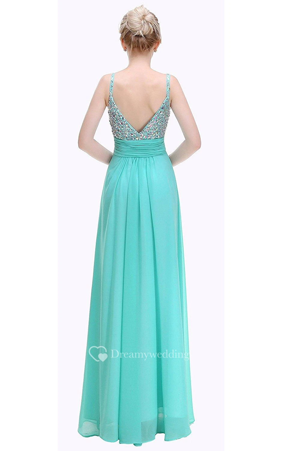 Sleeveless Straps A-line Floor-length Dress with Ruched Waist