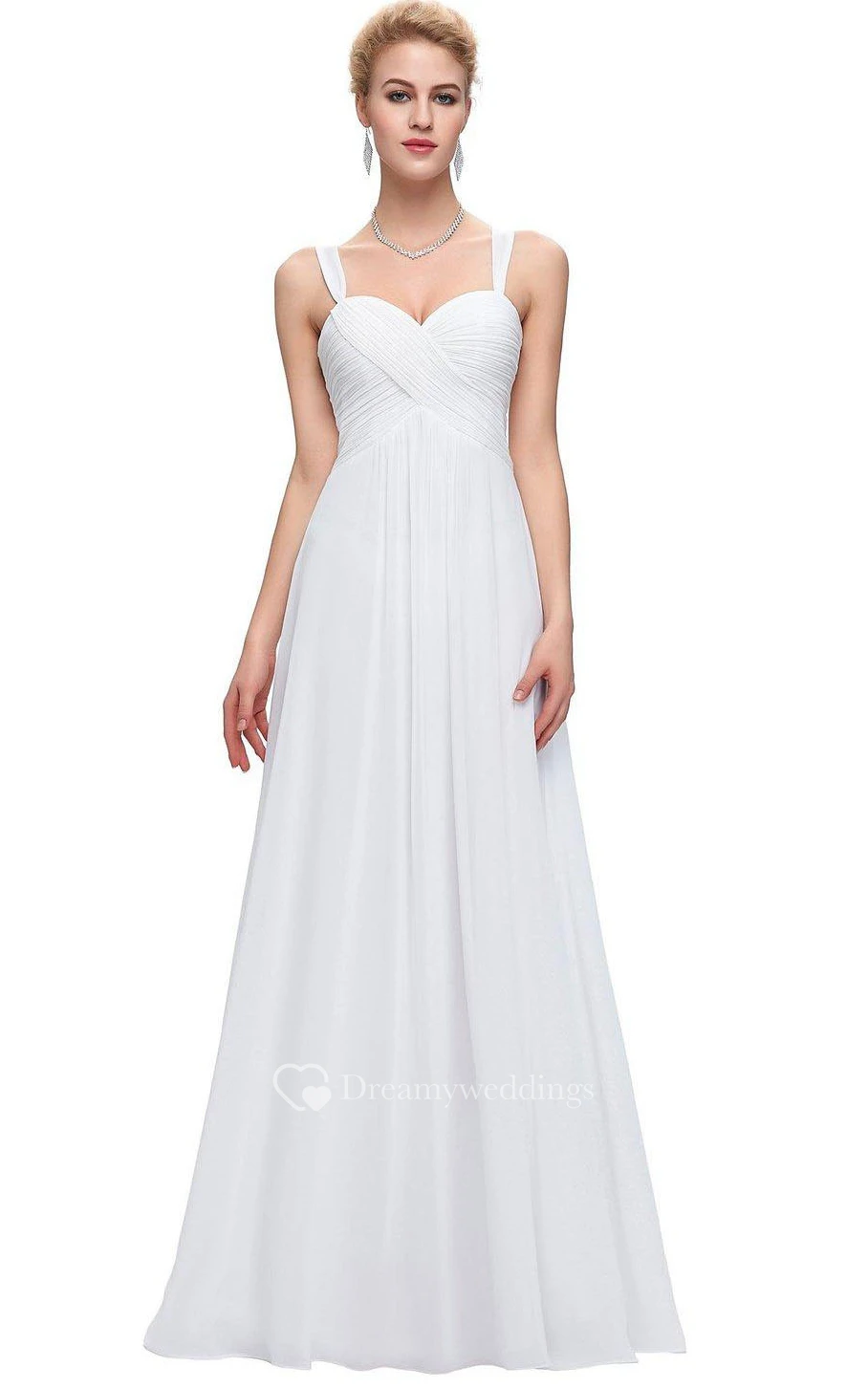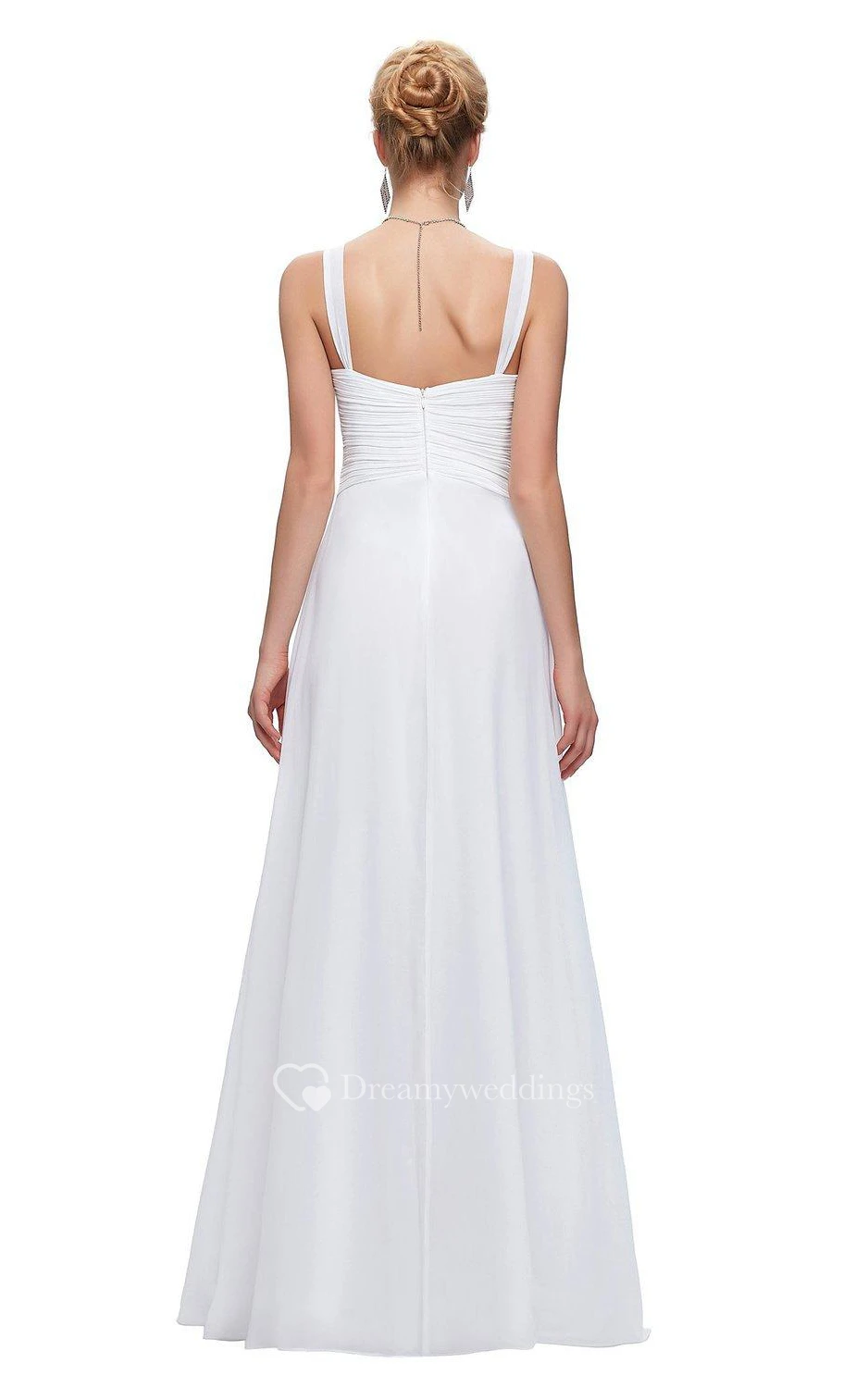 Sleeveless Straps A-line Long Ruched Chiffon Dress