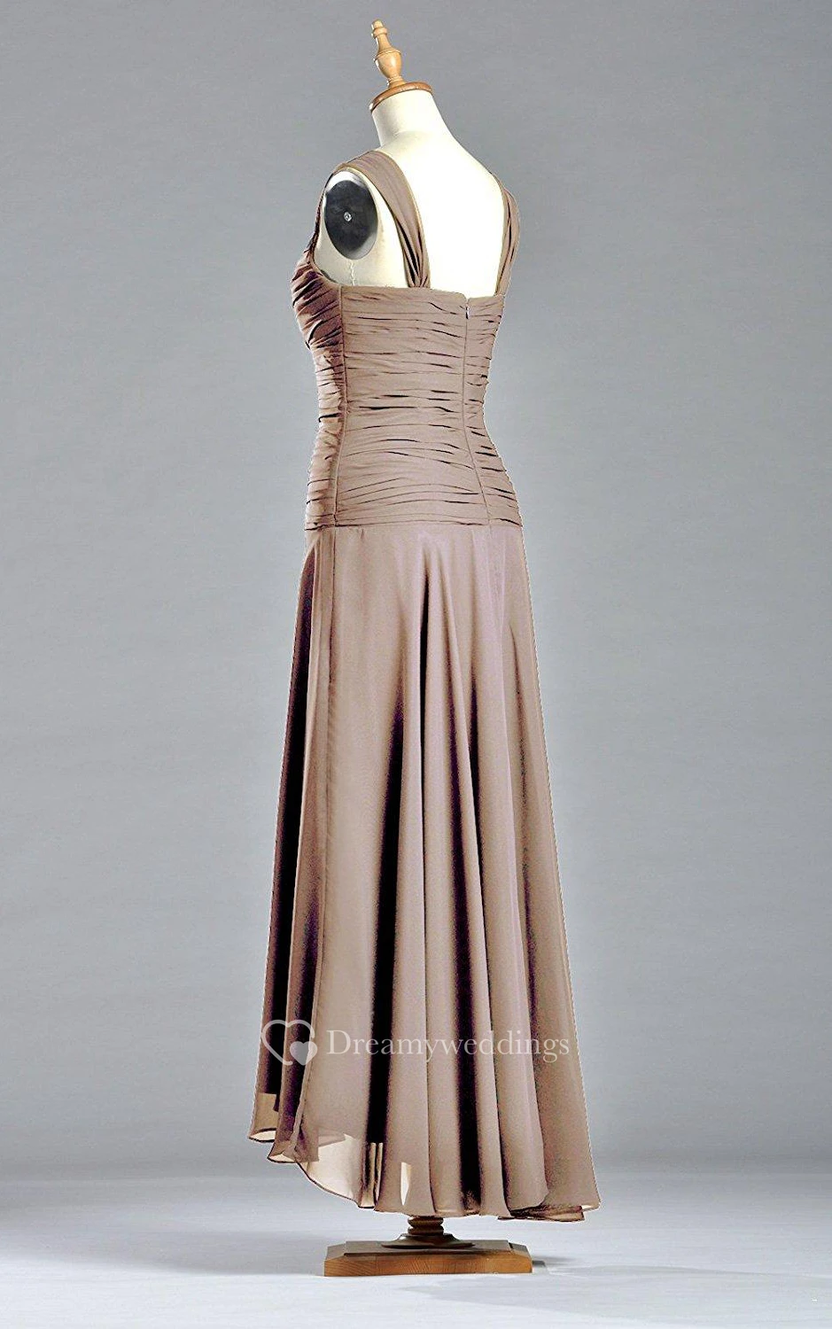 Sleeveless Straps A-line Tea-length Chiffon Dress