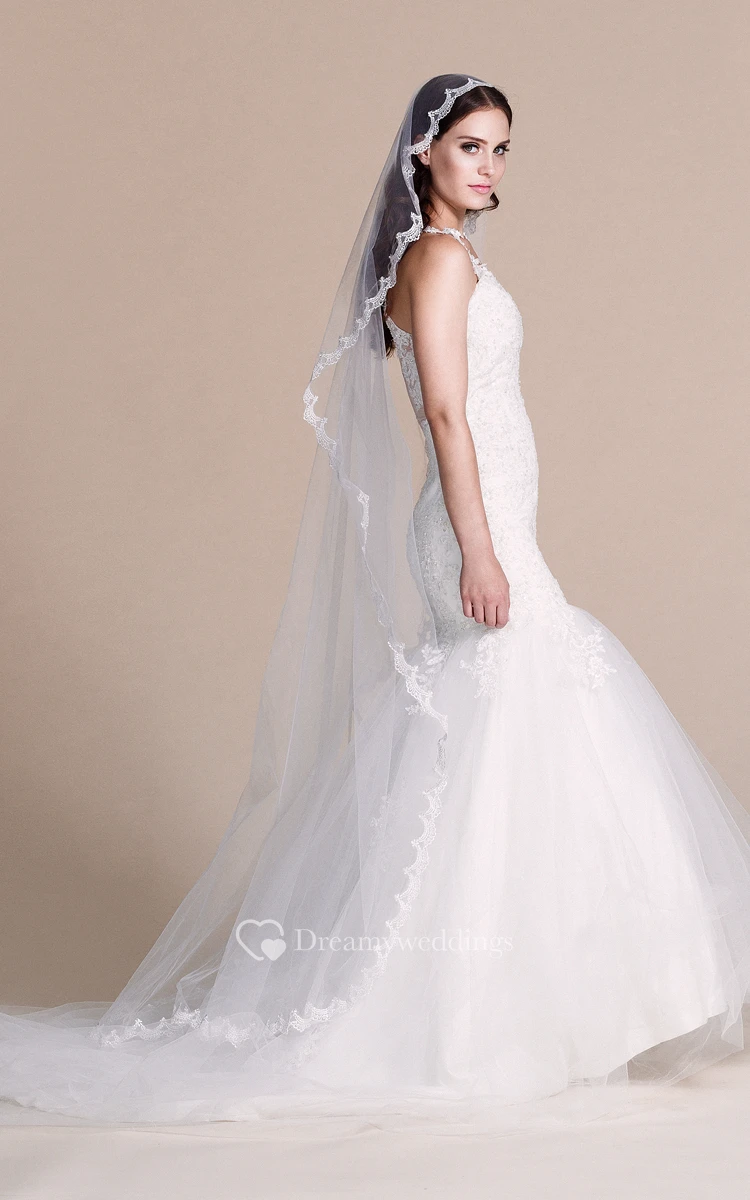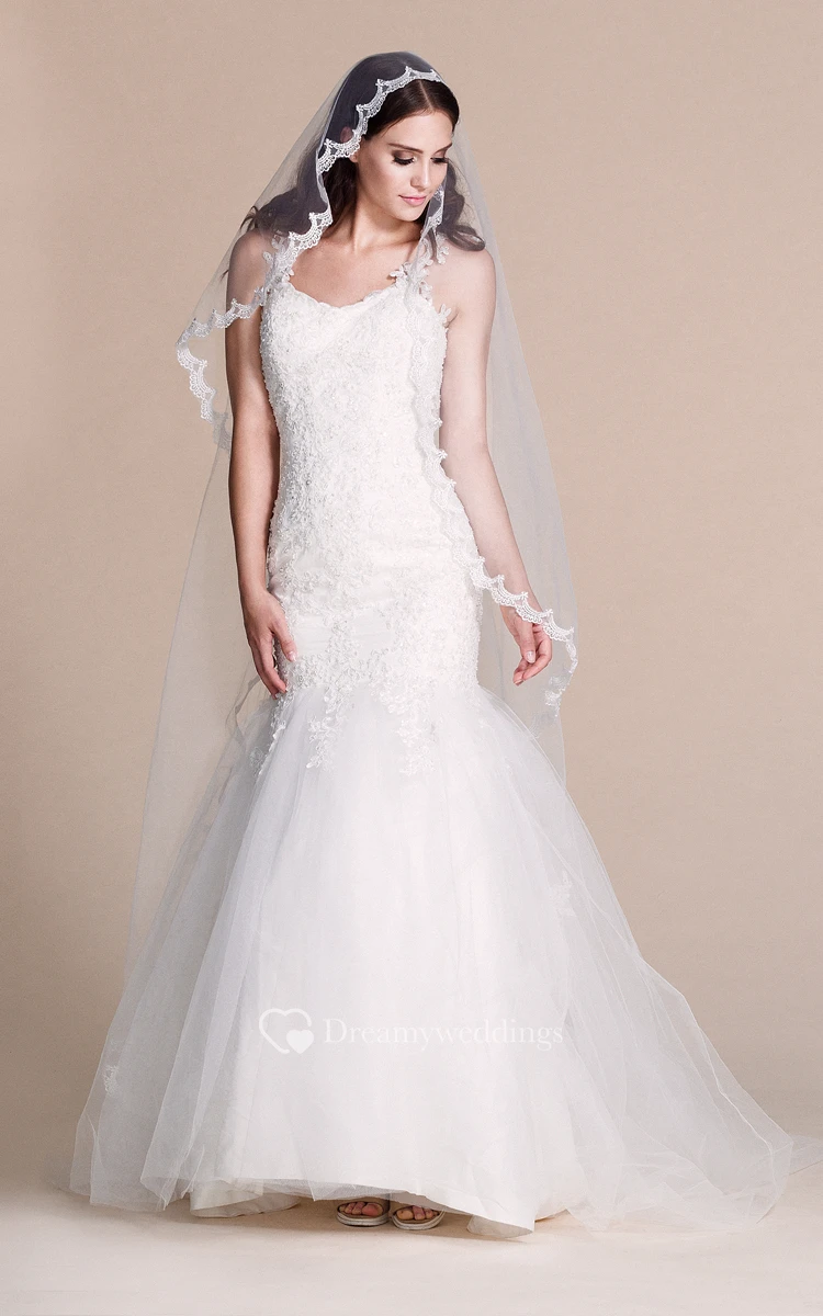 Sleeveless Trumpet Gown With Illusion and Pleats