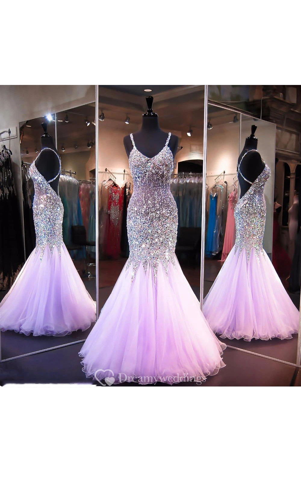 Sleeveless Tulle Sequins Dress with Spaghetti Straps