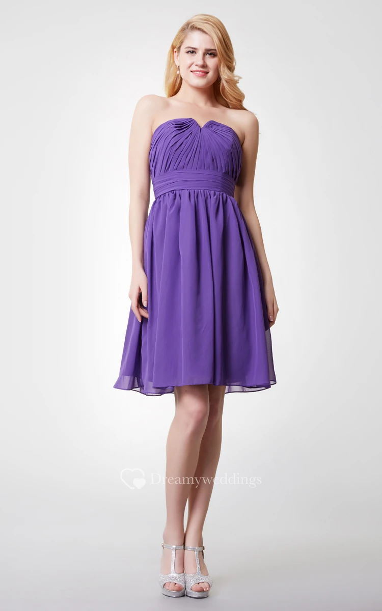 Sleeveless V-cut Neck Ruched Short Chiffon Dress With Zipper Back