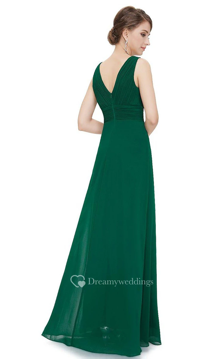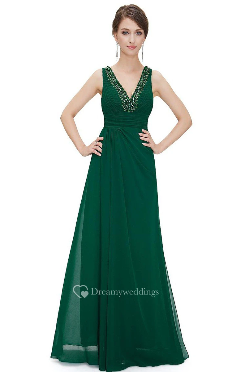 Sleeveless V-neck A-line Beaded Chiffon Gown