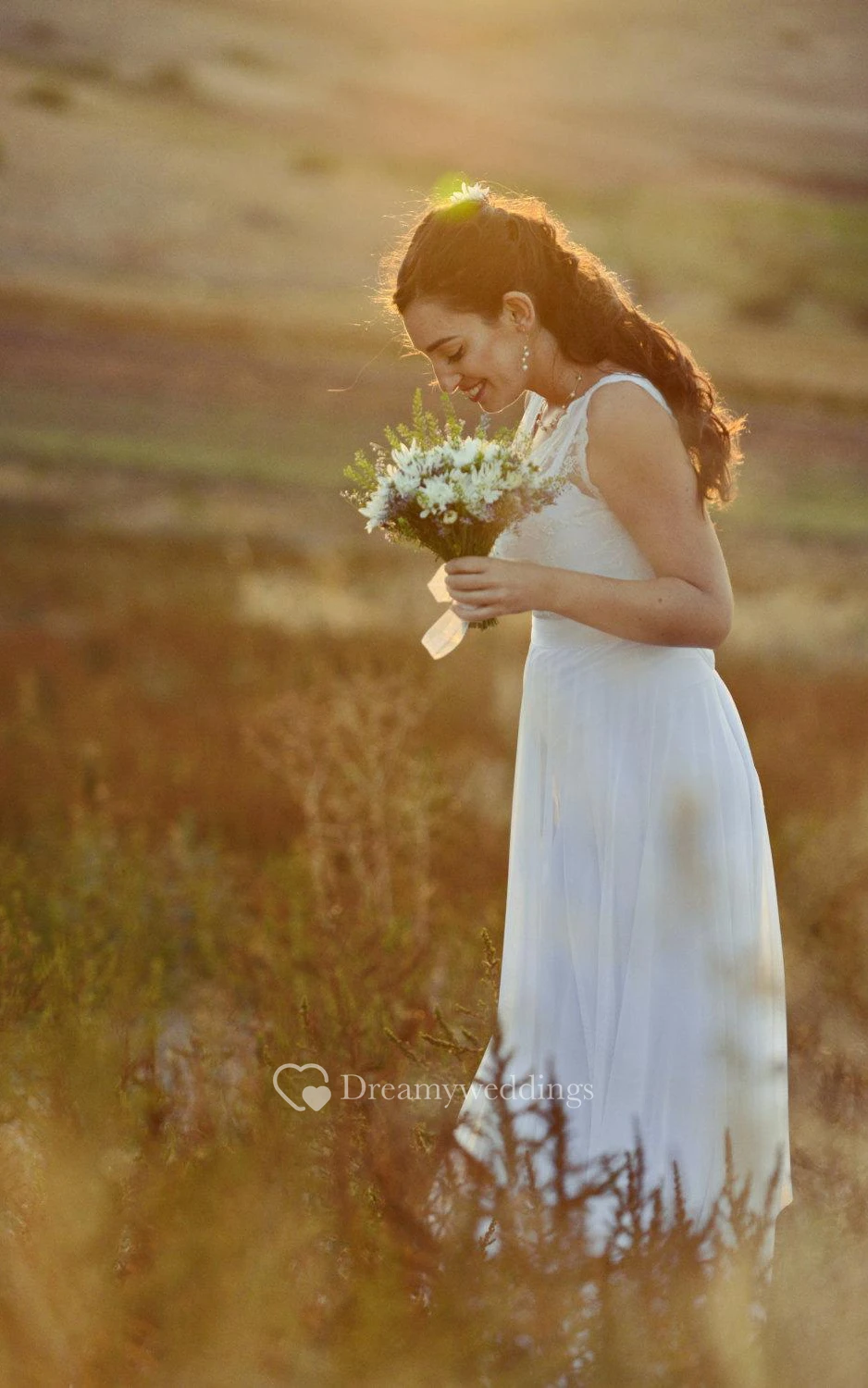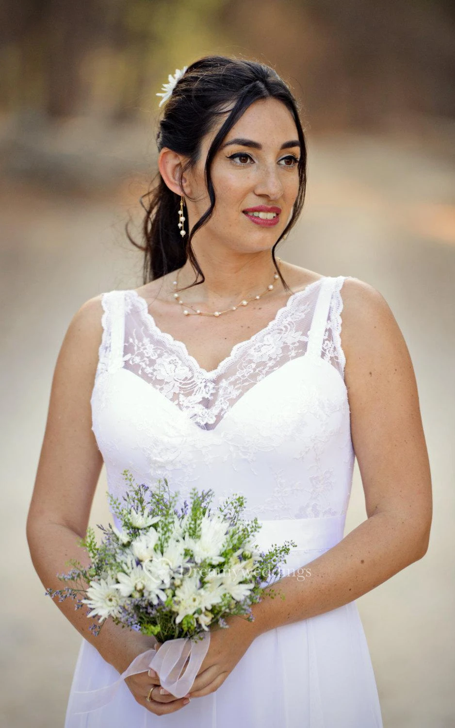 Sleeveless V-Neck A-Line Chiffon Dress With Lace Bodice